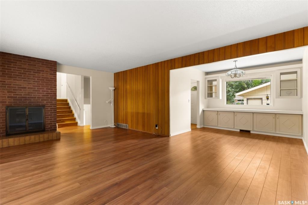 Welcome to 1536 Uhrich Avenue, a spacious and inviting split-level home located in the heart of Regina's desirable Hillsdale neighbourhood. Built in 1962 and offering 1,504 sq. ft. of above-grade living space, this residence sits on a generous 6,528 sq. ft. lot and is perfectly suited for families seeking both comfort and convenience. The main floor boasts a bright and open living room anchored by a large picture window that fills the space with natural light, complemented by laminate flooring and a charming brick-faced wood-burning fireplace. Adjacent to the living room, the dining area provides an ideal space for everyday meals and entertaining, while the kitchen features ample oak cabinetry, functional counter space, and a window overlooking the backyard. Upstairs you will find four bedrooms, each with laminate flooring, and two full bathrooms. The lower level is fully developed, offering a large recreation room and a versatile den that can serve as a home office, fitness area, or playroom. Outside, the mature yard provides privacy and room to relax, complete with a concrete patio, lawn, and plenty of space for kids or pets. The property also features a single detached garage measuring 23.3' x 15.3', with a concrete driveway offering parking for multiple vehicles. Ideally located near schools, the University of Regina, Wascana Park, shopping, and all amenities, this home offers a rare opportunity to own a solid, well-cared-for property in one of Regina's most established and family-friendly communities.