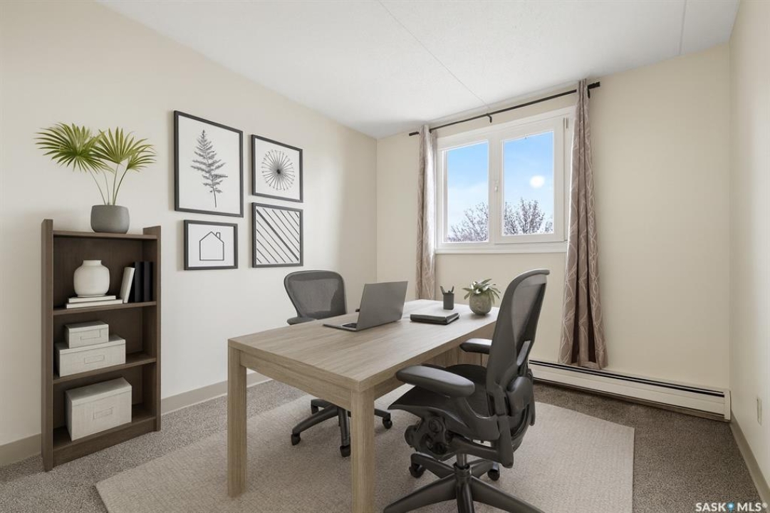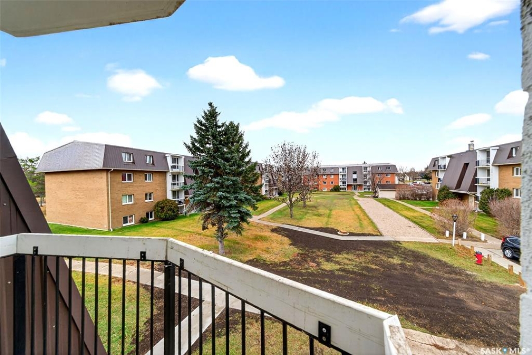 Welcome to Unit 32 at 27 Centennial Street, ideally located in Hillsdale - just steps from the University of Regina and SIAST. This well-maintained two-bedroom condo has been freshly painted and features neutral flooring throughout. The bright living room offers plenty of natural light, high-end carpet, and a European door leading to a private balcony overlooking the courtyard. The functional galley-style kitchen comes equipped with a fridge, stove, and microwave. The master bedroom is a generous size, and both bedrooms feature newer closet doors. A spacious in-suite storage room adds valuable convenience. Laundry facilities are located on the third floor, adding ease and accessibility for future condo owner. This upgraded unit is close to all south-end amenities, public transit, and local restaurants - perfect for students, investors, or first-time buyers. Condo fees include: heat, water, snow removal, common insurance, and reserve fund contributions. Parking: One electrified parking stall included. A great opportunity in a prime location!