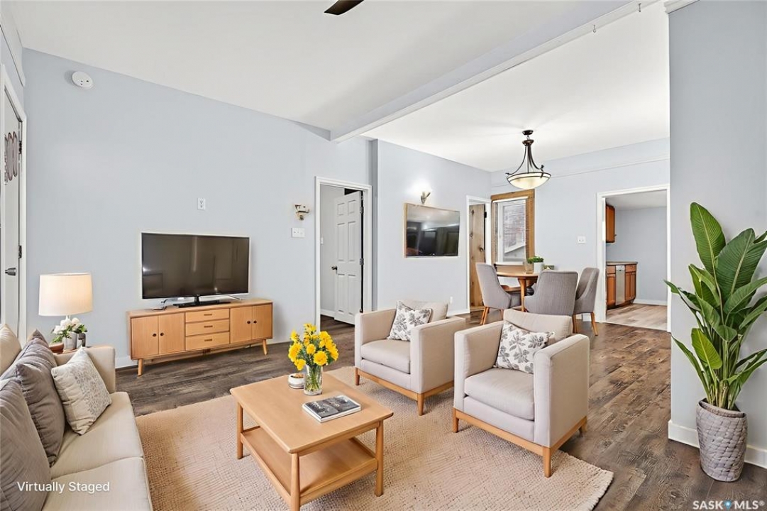 Check out this excellent home! Perfect starter home! This 2 bed / 2 bath home has lots of updates and a large double garage! Sitting on a large 50' x 125' lot this home shows well as you arrive. Heading inside you are greeted by a timeless sunroom - the perfect spot for your morning coffee. Next we find the living and dining space boasting 9 foot ceilings! Heading back we find a galley style kitchen with a stainless steel appliance package - off the kitchen we find a deck with access to your patio and firepit. Back inside on the main floor we find one of our bedrooms complete with a walk-in closet and main floor laundry. Finishing off the main floor we find an updated 4 piece bathroom. Downstairs we have a small office space, a spacious bedroom, 2 piece bathroom and a large workshop space. Outside there is a detached 22' x 24' garage that has power, is insulated and is setup for a fireplace for heat. So many updates have been done to this home! Pride of ownership shows well! Quick possession is available! Reach out today to book your showing!