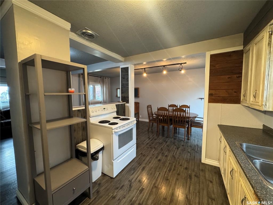 Enjoy easy, low-maintenance living in this nicely updated home just a short stroll from downtown. Designed for true single-level convenience, this inviting property offers a bright south-facing living room and a spacious kitchen with an adjoining dining area. Patio doors lead directly to the backyard deck—ideal for summer barbecues, morning coffee, or relaxing outdoors. The home features one bedroom and a four-piece bathroom with main-floor laundry for everyday practicality. Updates throughout—including flooring, fixtures, windows, and exterior doors—provide a clean, modern feel from room to room. A partial basement offers additional storage and houses the furnace and water heater. Outdoors, the fully fenced yard is a standout, showcasing a generous 42' x 10' deck, garden shed, mature trees, perennials, and plenty of green space to enjoy. Perfect for those seeking a simplified lifestyle, this home is conveniently located just a block and a half from the downtown core, half a block from the New Horizons Senior Center and medical clinic, and right across the street from the local library. A move-in-ready property in a prime location—book your viewing today!