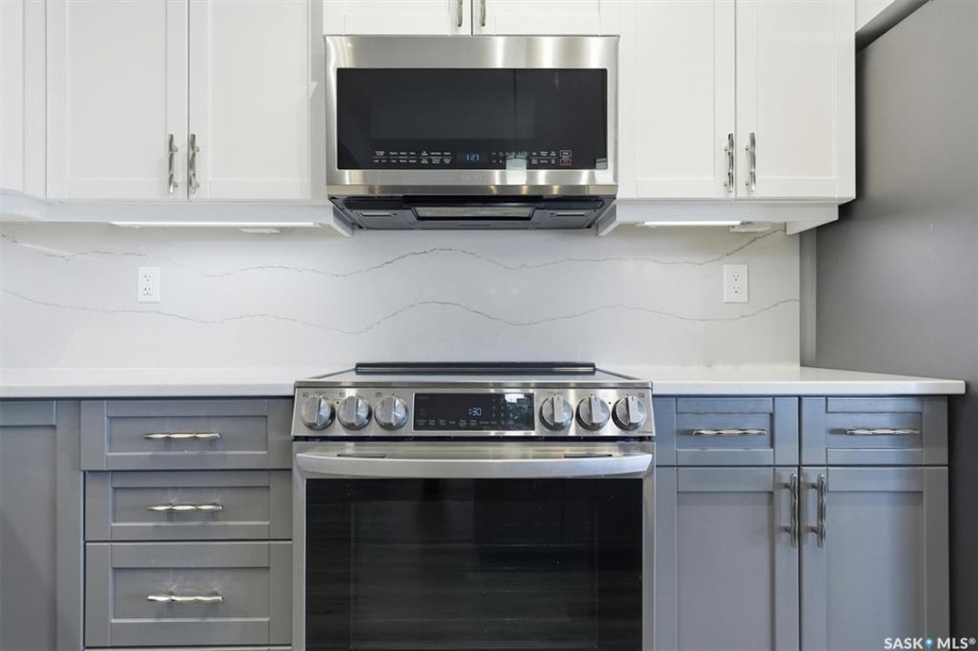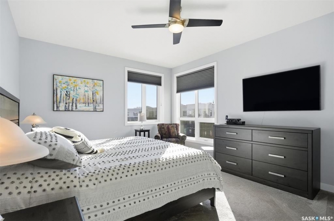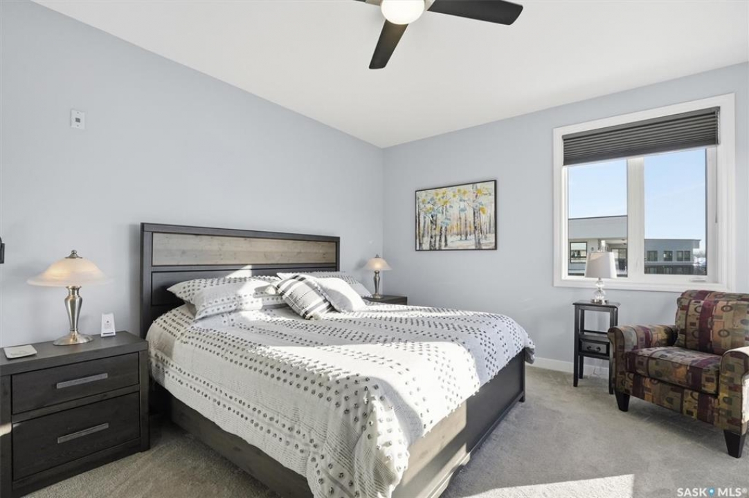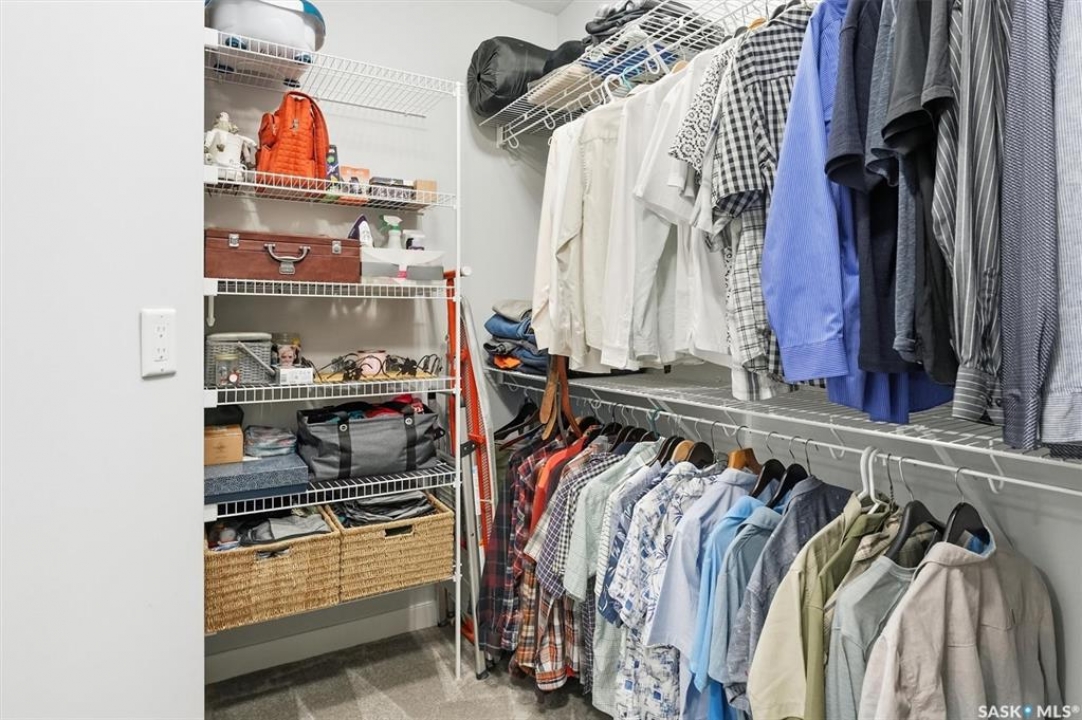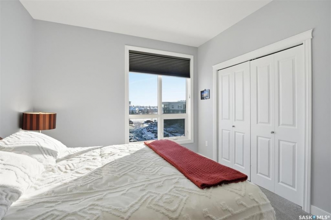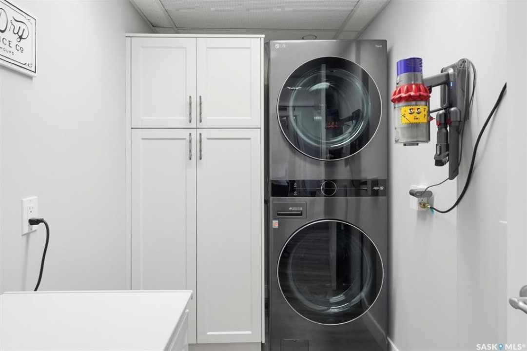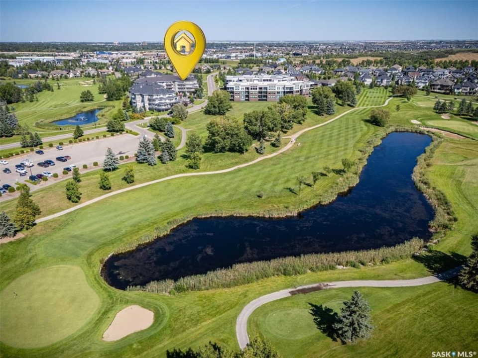 Discover this beautifully upgraded top-floor corner unit in Woodbridge II, a premier luxury condo building in The Willows by Valentino Homes. Enjoy spectacular views of The Willows Golf Course and the surrounding community, enhanced by abundant natural light from the south, east, and west exposures. With 1,565sqft �of living space, large windows, and 9-ft ceilings create a bright, open atmosphere throughout. The living room, dining area, kitchen, and den all feature upgraded luxury vinyl plank flooring and fresh paint. The stylish kitchen showcases refaced cabinets, quartz countertops and backsplash, a spacious island with a quartz waterfall feature, and stainless steel appliances—all seamlessly connected to the main living space. This unit includes two bedrooms plus a den, providing flexibility for work or guests. Both bathrooms are updated with ceramic tile flooring, new lighting, and quartz countertops. The primary suite stands out with upgraded built-in cabinetry, dual sinks with prep area, a full-sized shower, and a generous walk-in closet. Additional high-end upgrades include Hunter Douglas remote-controlled blinds—plus blackout blinds in the bedrooms—and a newer central air conditioning system. The laundry/storage room offers a newer washer and dryer and a custom cabinet with slide-out shelving. Step onto the deck to enjoy the views, complete with a natural gas BBQ hookup. Convenience continues with one underground parking stall, one surface stall, and an impressive two-level storage room offering nearly 100 sq. ft. of space. Pets are welcome with board approval. This exceptional unit delivers comfort, style, and an unbeatable location in one of Saskatoon's most desirable communities.