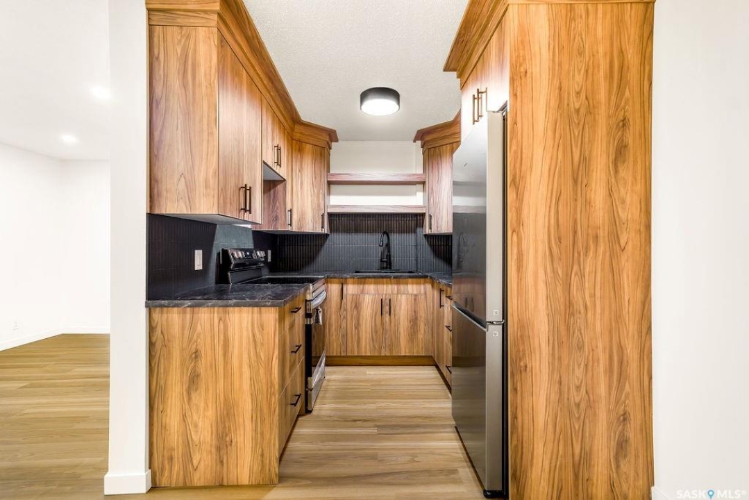 Step into this beautifully renovated condo located just steps from the university. Updated from top to bottom, this unit features all new Vinyl Plank flooring, fresh paint & new baseboards throughout, added pot lights in the living room, and a brand-new U-shaped kitchen with floating shelves, brand new stainless steel appliances, a sleek black backsplash, and modern matte-black fixtures throughout. The main floor bathrooms has been fully refreshed with a new vanity, taps, flooring, and light fixture. The main floor layout is functional, bright, and offers a direct view of the university — making it an ideal home for a student, young couple, small family, or anyone looking for low-maintenance living. Upstairs, there are three good-sized bedrooms and the primary features a large walk in closet. There is ample storage on the second level with both a linen closet and built-in shelves in the bathroom. The main bathroom received the same treatment as the main floor alongside a new tub & surround. There is one exclusive parking stall included and the basement is open for future development. Follow the main roads or many walking paths straight to the University or nearby park and amenities. Condo fees include water, offering affordable and worry-free ownership. Move right in and enjoy a thoughtfully updated home in a prime location.