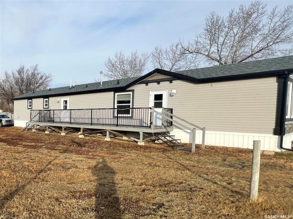 Welcome to small-town living at its finest! Located in the friendly and quiet community of Tompkins, Saskatchewan – right on the Trans-Canada Highway and only 40 minutes from Swift Current – this beautifully maintained mobile home offers the perfect blend of comfort, convenience, and space. Step inside this bright and spacious open-concept gem featuring vaulted ceilings and an abundance of natural light. The inviting living room flows seamlessly into the modern kitchen and dining area, complete with a convenient pantry – ideal for everyday living and entertaining. The home boasts three generous bedrooms, including a large primary suite with a walk-in closet and a luxurious 4-piece ensuite bathroom. Everything is on one main floor – no stairs, just easy, comfortable living. Outdoor living is a dream here! Enjoy summer barbecues and relaxing evenings on the huge deck. The massive 100 x 122 ft lot provides tons of room for gardens, toys, RVs, or simply enjoying the wide-open space. Multiple sheds offer excellent storage, and the insulated + heated single-car garage is perfect for projects or keeping your vehicle cozy year-round. Pride of ownership shines throughout – this home has been meticulously cared for and is truly move-in ready. If you're looking for affordable, low-maintenance living in a calm, welcoming community with quick highway access, this is it! Must be seen to be fully appreciated. Call today to book your private tour.
