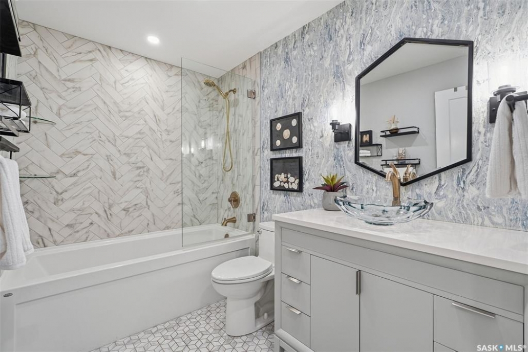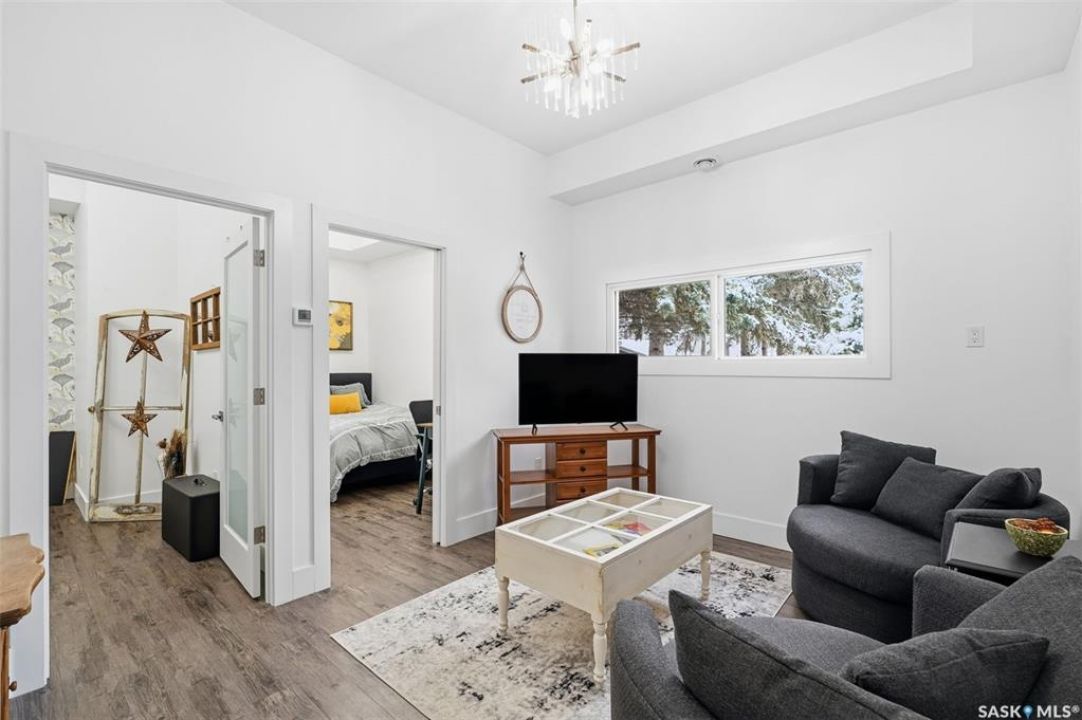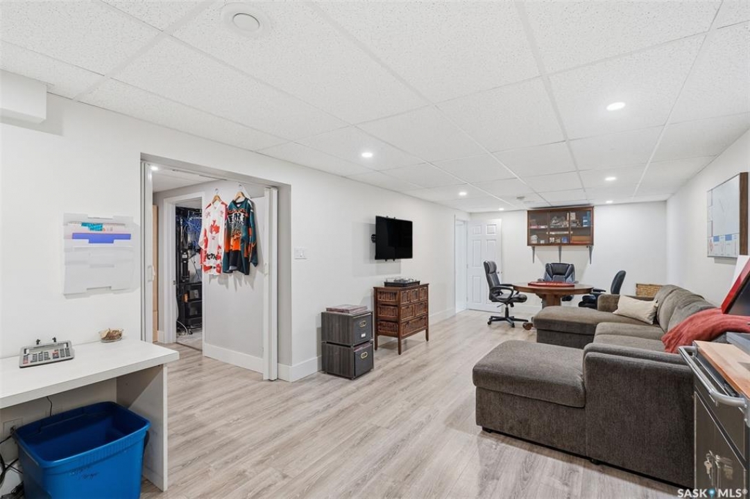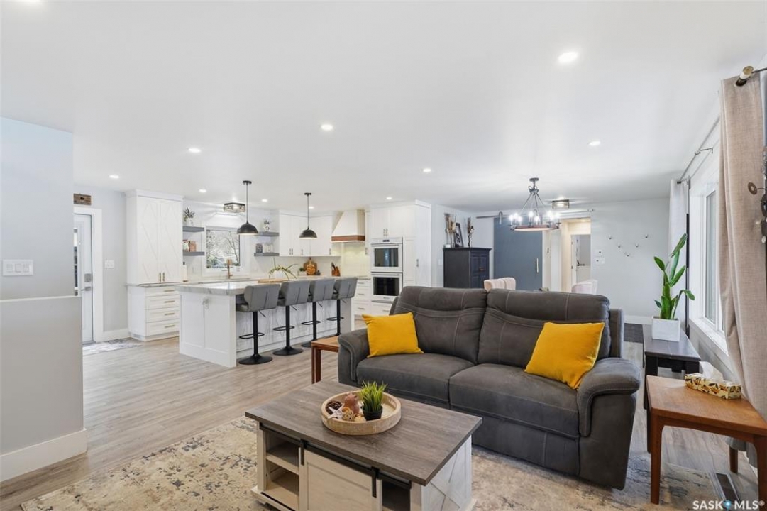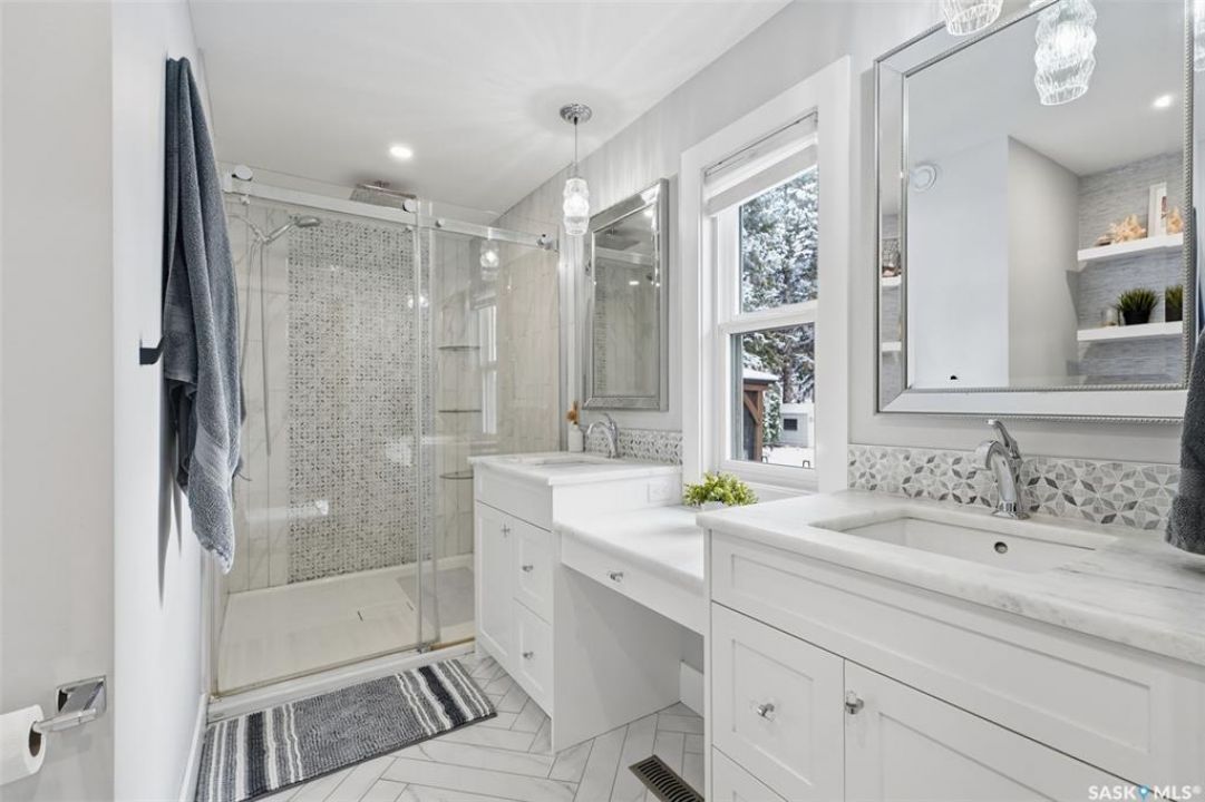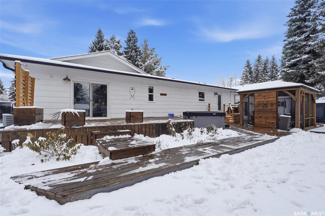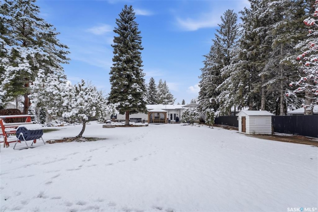 Welcome to this exceptional 4-bedroom, 4-bath bungalow, offering an impressive blend of modern comfort, privacy, and versatility. The newly remodelled open-concept kitchen features a spacious island, walk-in pantry, and seamless flow into the main living areas—perfect for family living and entertaining. The finished basement includes a convenient 3-piece bath, while the unique east-wing suite provides a bedroom, lounge, and its own 3-piece bath. With plumbing already in place to add a kitchen, this space is ideal for an in-law suite or income-generating unit. The private primary suite is a true retreat, complete with a large walk-in shower, dual sinks, walk-in closet, and garden doors that step out onto an elevated deck. Main-floor laundry and abundant storage throughout add everyday convenience. Situated on a private �-acre lot, this property offers mature trees—including a stunning Douglas Fir—full fencing with privacy slats, and a rear driveway with 10' gates off the alley, perfect for parking a boat, RV, or other toys. The in-ground sprinkler system keeps the grounds low-maintenance and beautifully lush. A standout feature is the massive 2.5 car rear garage, complete with a separate workshop and drive shed—ideal for hobbyists, contractors, or those needing extra workspace. Updates since purchase include: décor improvements, new eavestroughs, insulated garage doors on the alley garage, a 10 x 12 cedar gazebo, Jacuzzi hot tub, privacy fencing, new back-door stairs, and enhanced landscaping/gardens. Inclusions: gazebo furniture and cushions, hot tub, all appliances, window coverings, and the built-in saw in the workshop.