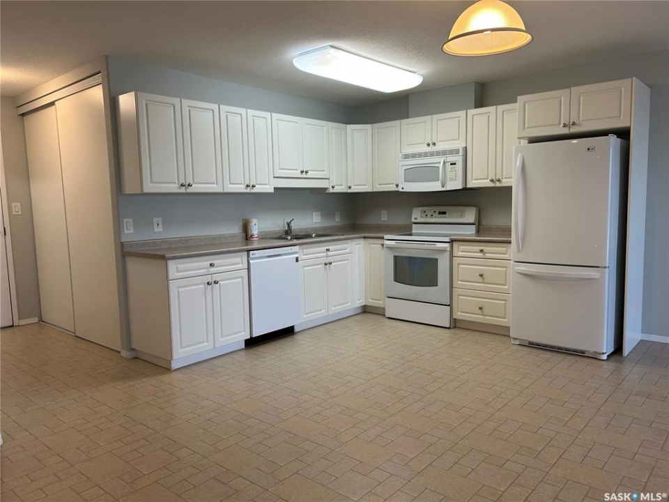This spacious yet cozy open-concept condo offers comfortable living in an “adult preferred” building, conveniently located within walking distance of the mall, leisure center, and numerous amenities. You'll love the abundant storage, including a pantry, five closets, in-suite laundry storage, and a cold storage room off the balcony. The primary bedroom easily fits a king-size bed and features two closets and a private ensuite. The second bedroom is ideal as a guest room, home office, or TV room. Enjoy the convenience of a heated ground-floor parkade with a single parking stall, plus access to the building's well-equipped exercise room and a gathering room available for condo and private events. The building is exceptionally well maintained and kept impressively clean. Appliances included: refrigerator, stove, newer dishwasher, microwave, air conditioner, and window treatments, and a newer wall air conditioner unit. Here you will find comfort, convenience, and community—ready for you to move in and enjoy!