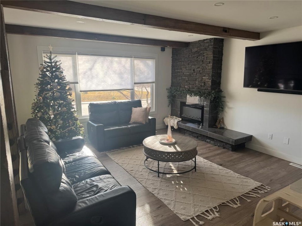 This one of a kind Pleasantdale house checks all the boxes! A half acre property with all the best features of an acreage in the most popular area of Estevan. The extensive renovations and upgrades make it essentially a brand new home. With open concepts on both levels, 5 good sized bedrooms, 3 beautiful bathrooms, a huge fenced yard with a large deck, 32x32 heated shop and a 12x24 shed. Whether you are entertaining a crowd or just curling up in front of the cozy fireplace to watch a movie with the kids, you will feel right at home here.