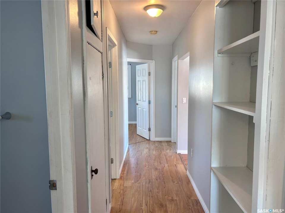 Charming 1950s Home on Double Lot in the Heart of Shellbrook Discover this well-maintained, 1040 sq ft, 3 + 1 bedroom, 2-bathroom home perfectly located in the thriving community of Shellbrook—right across the street from both schools, making it ideal for families. Built in the mid-century era, this home showcases timeless character with original hardwood floors in the main living area and a classic arched doorway between the dining and living rooms. The main level features large, new windows that flood the space with natural light, creating a bright and airy open-concept kitchen, dining, and living room layout. The home offers a four-piece bathroom upstairs and a three-piece bathroom downstairs, along with an additional bedroom and a rumpus room in the lower level. Comfort is enhanced with the recent installation of central air. Situated on two spacious, mature lots, the yard provides room for play, gardening, and relaxation. The property also includes a single detached garage and a storage shed for added convenience. This is a rare opportunity to own a charming, well-cared-for home with classic appeal and modern updates in one of Shellbrook's most desirable locations. Move in ready! Call realtor to view.
