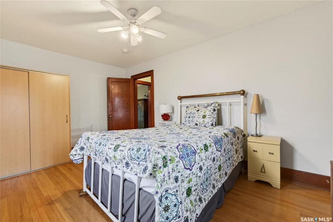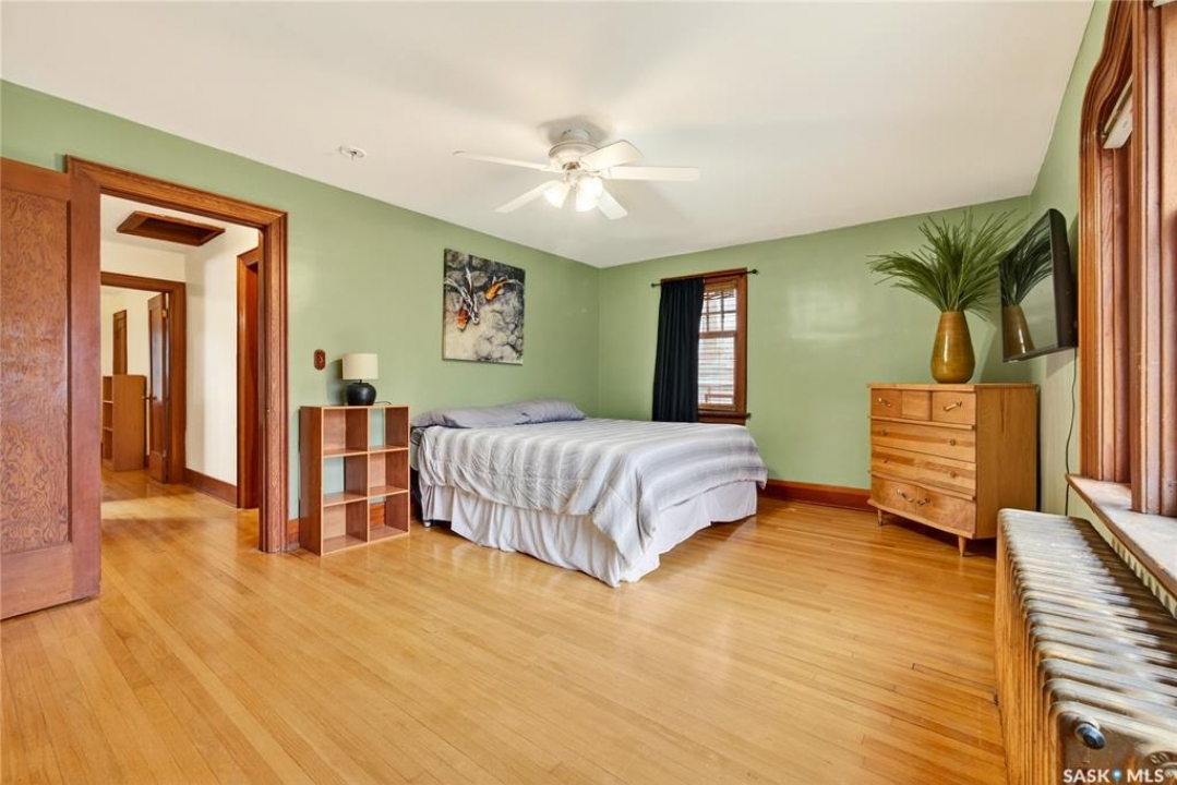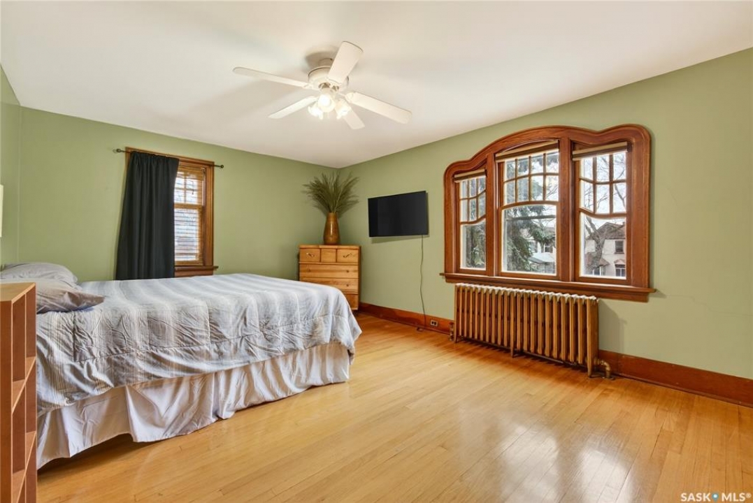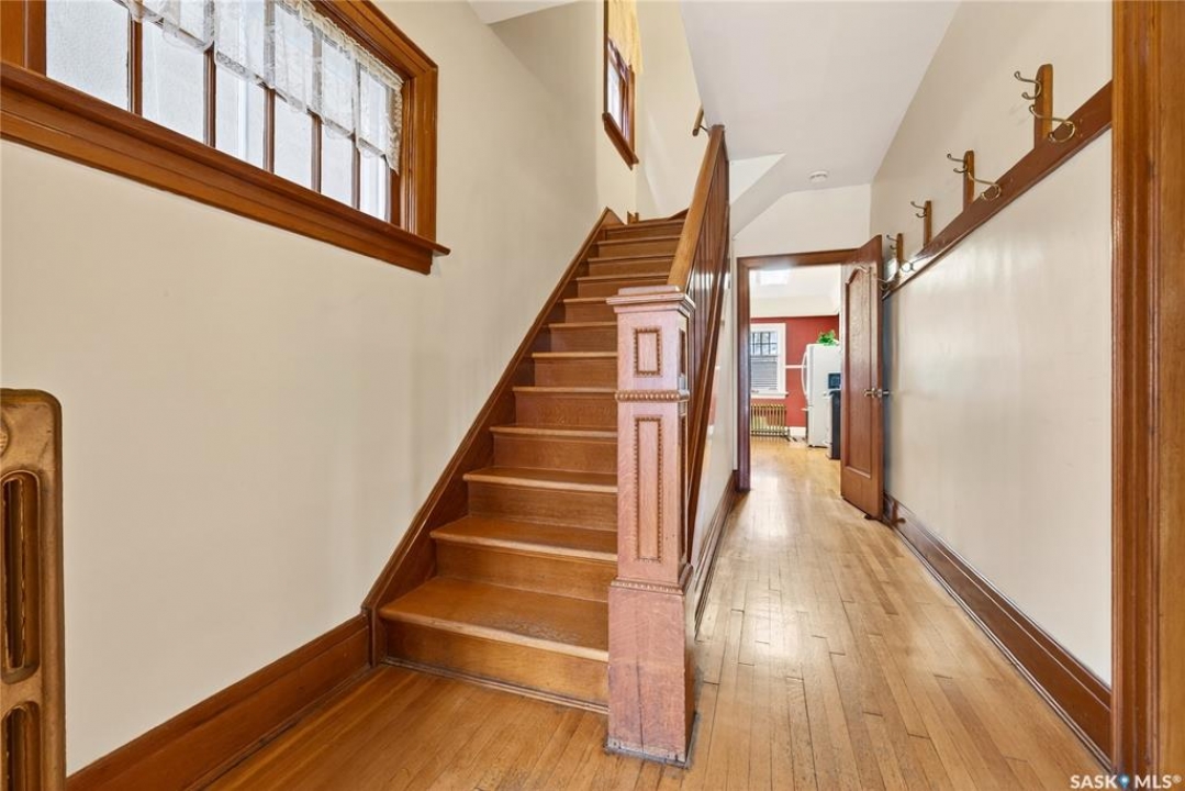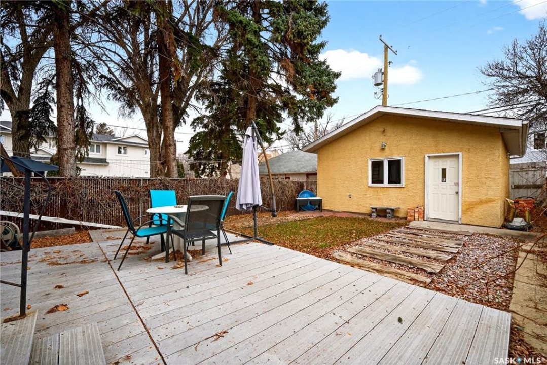 Welcome to this beautiful 1,675 sq. ft. well cared for character home, where charm and warmth meets thoughtful upgrades. Step into the generous entryway, a welcoming space for guests to shed coats and shoes before moving into the heart of this stunning residence. Original hardwood floors flow gracefully across both levels, complemented by bevelled glass doors, rich wood trim, and elegant archways that highlight the home's craftsmanship. The main living room is anchored by a unique gas fireplace, crafted with reclaimed wood from the historic Lumsden elevator—a great conversation piece for cozy nights. Just beyond, the bright south-facing office offers an inspiring workspace and the perfect haven for your indoor greenery. Gatherings are effortless in the spacious dining room, ideal for holiday feasts or casual weekly entertaining. The kitchen features white cabinetry, stainless steel appliances, a double oven, and ample counter space. An eat-up breakfast bar invites conversation and connection while meals are prepared. Upstairs, the expansive primary bedroom includes a walk-in closet, while two additional bedrooms and a 4-piece bath with cast iron tub and updated tiles complete the second floor. The fully finished basement is a true bonus, warmed with in-floor radiant heat. With a kitchen area, family room, fourth bedroom, 4-piece bath, and laundry, it offers excellent potential as a roommate suite or guest retreat. Notable updates to the home include a durable metal roof and a high-quality Viessmann boiler , electric panel. Outdoors, the private backyard is perfect for summer relaxation on the low-maintenance deck. An oversized single garage adds even more value to this rare find. If you're seeking a well-maintained character home close to downtown, this gem may be for you!