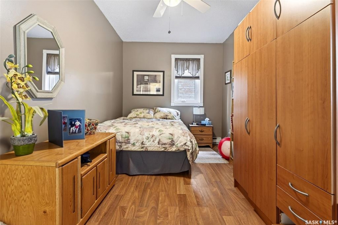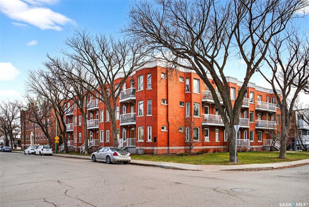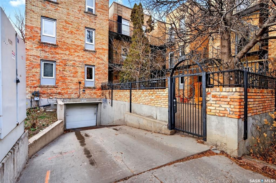 Discover a rare top-floor retreat in the heart of Regina's beloved Cathedral neighbourhood where historic character meets urban convenience. Set along mature, tree-lined streets and just steps from cafés, restaurants, boutiques, grocery stores, and downtown, this 1475 sq. ft. 3-bed, 2-bath condo captures the essence of Cathedral living. Step inside and be greeted by an abundance of natural light pouring through a stunning oversized skylight in the stairwell. At the front of the home, the expansive living room is anchored by crown moulding and a beautiful natural gas brick fireplace, creating a sense of comfort. The galley-style kitchen offers ample counter space and a versatile area that can serve as a dining nook or office. You will then find a back entrance door with an area for your BBQand a stairwell to the courtyard. A well-appointed 4-piece bathroom with a jetted tub and the convenience of in-unit laundry enhance day-to-day comfort.There are two bedrooms that offer flexibility for guests or a home office. Tucked at the end of the hall, the primary bedroom is truly a suite of its own, a spacious room featuring large windows, another charming brick fireplace, a private 2-piece ensuite, and walk-in closet. Enjoy the best of both exposures with two private balconies, a south-facing balcony overlooking the peaceful courtyard and a north-facing balcony with views stretching toward 14th Avenue, connecting you to the vibrant energy of the neighbourhood. Residents of this well-maintained building also enjoy exclusive access to a private courtyard, secure underground parking (one stall included), and locked storage—adding ease and practicality to everyday living. If you've been searching for a home that blends timeless character, thoughtful updates, and an unbeatable Cathedral location, this exceptional top-floor condo is the one. A rare opportunity to live in comfort, style, and community—all in one of Regina's most desired neighbourhoods.