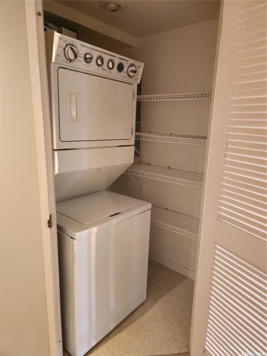 Welcome home to 424 Spadina Crescent East. This executive condo features 2 bedrooms, 2 bathrooms, in-suite laundry, storage locked and underground parking. The entrance opens right in to the living space. The walls surrounding the den have been removed to allow for an open living space. The kitchen features granite countertops and stainless steel appliances. The large primary bedroom features a walk-in closet and en-suite. Views overlooking Broadway Bridge And the River. This concrete building features access an in-door swimming pool, exercise room, underground parking stall, and storage locker. Easy access to walk along with river out the front of the building. Easy access to enjoy the many Shops and restaurants located in the Downtown area