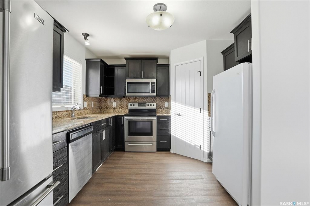 Welcome to this beautifully maintained 2-storey home in the desirable community of Hampton Village, perfectly situated close to schools, parks, shopping, and just a short drive to downtown Saskatoon. Built in 2011, this spacious property offers a total of 5 bedrooms and 4 bathrooms, making it ideal for families or investors. The main floor features an inviting, open-concept layout with plenty of natural light, a functional kitchen, and comfortable living and dining spaces. Upstairs you'll find well-sized bedrooms, including a generous primary suite. A standout feature of this home is the regulated basement suite, complete with its own separate entrance. The suite includes 2 bedrooms, 1 bathroom , a full kitchen, and living area, offering excellent rental income potential or an ideal space for extended family. Located in a vibrant, family-friendly neighbourhood close to every amenity you could need, this home is the perfect blend of comfort and opportunity. Call your REALTOR � today!