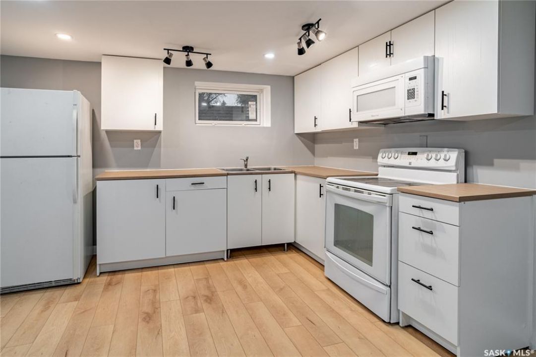 Welcome to this spacious and highly versatile 5-bedroom, 3-bathroom bungalow situated on a quiet street in the prime, established neighborhood of Whitmore Park. Offering 1,109 sq. ft. of comfortable main-floor living, this property is perfectly configured for large families, multi-generational living, or savvy investors seeking rental income. The bright main floor features a welcoming living room, a dining area, and three generous bedrooms, including a Primary Bedroom with private 3-piece Ensuite and an additional full bath. The true highlight is the fully developed lower level, which offers incredible flexibility. It includes two additional bedrooms, a second kitchen and dining area, a 3-piece bathroom, and ample storage/laundry space. This setup is perfectly suited for an in-law suite or a dedicated rental unit, providing an immediate path to maximizing value. Outside, enjoy a fully fenced backyard and a large single detached garage. Location is paramount: you are just minutes from the University of Regina, Sask Polytech (SIAST), Ring Road access, and all desirable South End amenities. This is a solid, well-located property offering unparalleled potential for comfort, convenience, and passive income. Don't miss this opportunity in one of Regina's most desirable communities! Book your showing today!