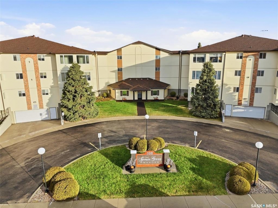 SOUTH-WEST CORNER, SECOND FLOOR, 2 bedroom Condo in great condition. You will appreciate the spacious dining and living rooms, the well appointed Kitchen with stainless steel fridge and range, the generous master bedroom with it's convenient 2 piece ensuite bath, the main bath with it's convenient walk-in shower and the south facing sun room that adds so much natural light to the unit. The owner had Protint add 50% UV filter film to the south facing window and 80% UV filter film to the East and West side of the Sun room window to cut down on the summer heat. The condo comes with up-graded laminate flooring, neutral paint throughout while the second bedroom features a Murphy bed and built-in desk and storage. 4 quality appliances are included (the up-right freezer is not) and the laundry room comes with a wall-to-wall storage closet. The unit has an excellent parking spot with ample space to turn in and out as well as an additional storage space #201 located on the parking level across from the amenities room. Spruce Grove Manor features a large amenities room with kitchen plus a workshop for the hobbyist. Many of the large ticket maintenance items have been completed, including replacing the elevator. Pets are not allowed and smoking is not allowed in the building or on the property. Contact your favorite real estate professional for a private tour.