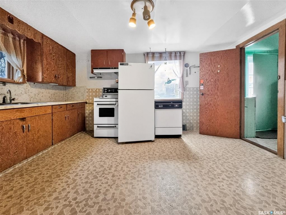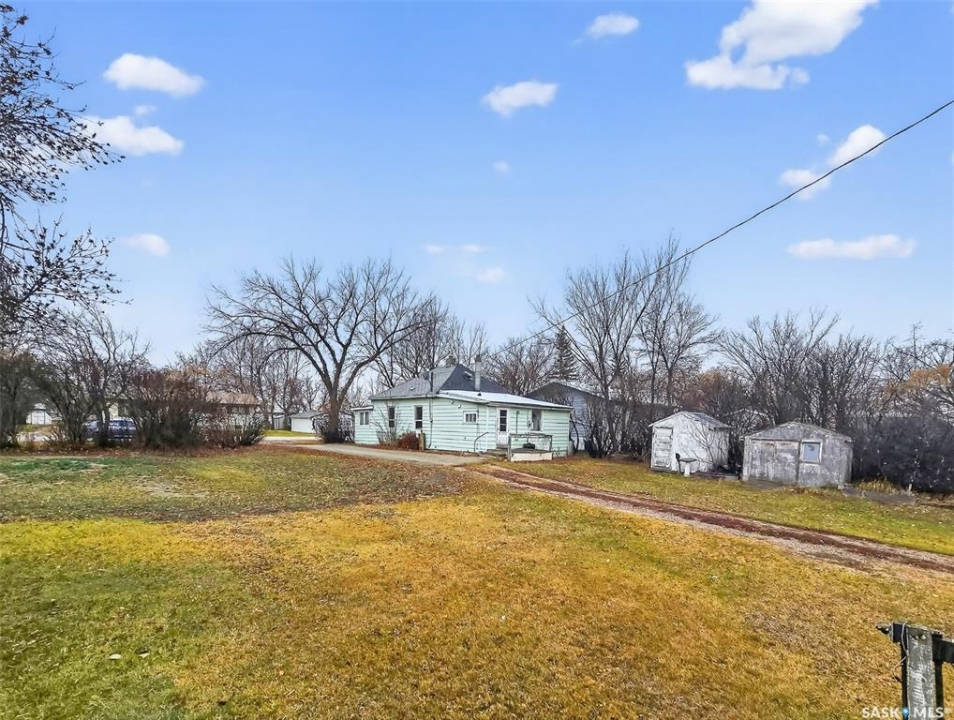 Looking for great starter home in Central Butte? This 2 bed and 1 bath home sitting on a large double lot boasts just under 800 sq.ft and has a single garage! The double lot boats 100 feet of frontage by 140 feet deep and has lots of mature trees giving some privacy. Heading in the back door you are greeted by a mudroom which houses main floor laundry. Next we find an eat-in kitchen with lots of cabinet space. Off to one side we find a 4 piece bathroom. Heading to the front of the home we find a large living room - perfect for entertaining. Off the living room we have 2 good size bedrooms with built-ins. At the very front of the home we have a sunroom - the perfect place for your morning coffee! Outside we find a single detached garage which is 14'x22' as well as 2 sheds. Lots of extra parking here. Quick possession is available. Reach out today to book your showing!