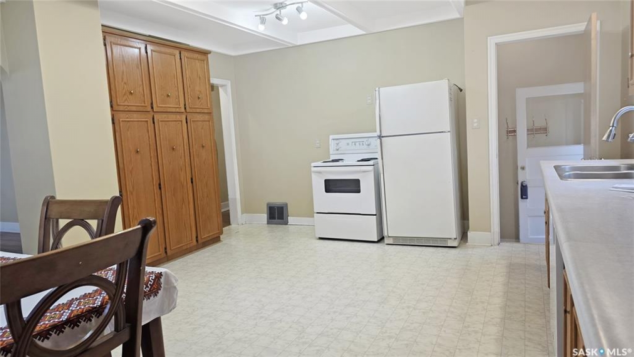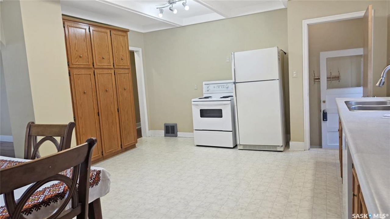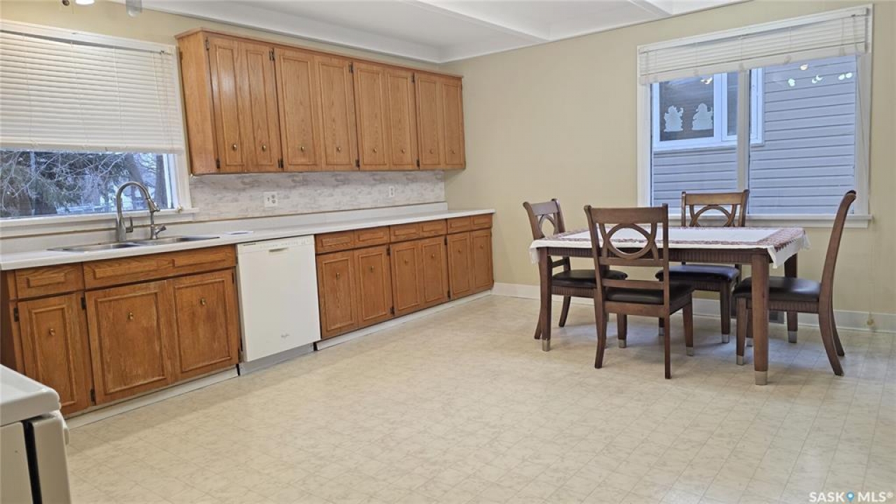 Welcome to 42 Tupper Ave. in the heart of Yorkton—a place where mid-century character meets the comfort of small-town living. Built in 1952 and lovingly maintained, this 1,207 sq. ft. home offers a sense of warmth and familiarity the moment you step inside, the kind of feeling only an established neighbourhood can provide. From the back foyer, a short set of stairs leads you into an unexpectedly open kitchen and dining area—more spacious than most homes of this era and perfect for family gatherings. The front living room features a beautiful picture window that fills the home with natural light and highlights the polished original hardwood floors—true mid-century craftsmanship that has stood the test of time. Down the hall are two comfortable bedrooms and a full bathroom, all offering practical living with the quiet charm that comes from a well-built home. Downstairs, the partially developed basement expands your possibilities with a massive third bedroom (or a fantastic playroom/teen retreat) along with a cozy family room. Step outside and enjoy the kind of backyard you rarely find anymore—a huge, mature, treed lot with plenty of privacy, a firepit for evenings under the stars, and a single detached garage. It's the perfect place for kids to play, pets to roam, or families and friends to gather around the fire on warm prairie nights. Recent updates—including new shingles, hot water tank, water softener, and fresh interior paint—offer peace of mind while preserving the charm of the home's original style. Located in central Yorkton, you're within easy walking distance to downtown shopping, schools, parks, and all the community amenities that make this city feel like home. Priced under $200,000, this welcoming home is the ideal blend of character, comfort, and convenience—and opportunities like this don't come along often. If you've been waiting for a safe, friendly neighborhood and a home with heart, your chance is here.