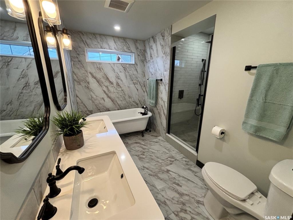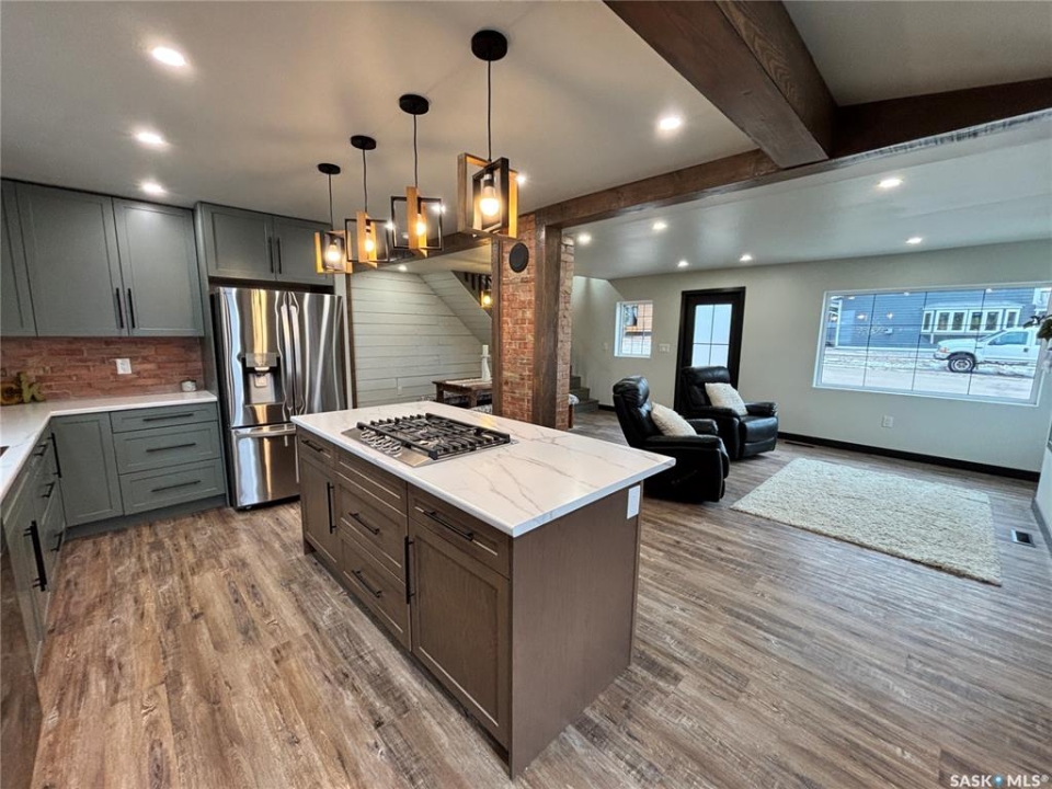 OPEN HOUSE-NOV 30 1PM-3PM!! Welcome to a truly exceptional property in the charming community of Bruno.This beautifully restored 1,956 sq.ft. 1 1/2 storey home has been completely renovated inside and out—right down to the studs—while thoughtfully preserving timeless character and local history.Main floor is the definition of modern rustic elegance.Step inside to an inviting open-concept main floor where living room,dining room,and kitchen flow seamlessly together.Design blends modern comfort with rustic charm,featuring:electric fireplace on a striking feature wall,exposed beams,shiplap details,and original brick accents,including brick sourced directly from the historic Bruno Brick Factory.Spectacular chef's kitchen with large contrasting island,gas cooktop,abundant counter space,custom cabinetry,and impressive storage.Main floor also offers a gorgeous 4-pc bath complete with free-standing soaking tub,tiled walk-in shower with rainfall shower head and double-sink vanity.There are two spacious bedrooms on this level,including a tranquil primary suite with a walk-in closet and a private 2-pc ensuite.A convenient main-floor laundry room leads to the back entrance.The second level offers additional space for everyone.Upstairs,two additional bedrooms,storage area,cozy bonus room,and stylish 3-pc bath with custom-tiled shower and rainfall shower head-perfect for kids,guests,or home office setup.The basement has seen an improvement in layout & functionality.The basement has been reconfigured and restructured for better use,including relocating the furnace and water heater to create a more open,functional space suitable for storage,hobbies,or future development.The exterior is essentially brand new as well.No detail was overlooked outdoors-new windows,siding,soffit,fascia,and shingles.Beautiful curb appeal with the charm of an older home and the durability of modern construction.Come check out all the updates this gorgeous house has received!