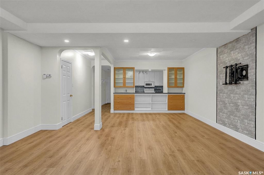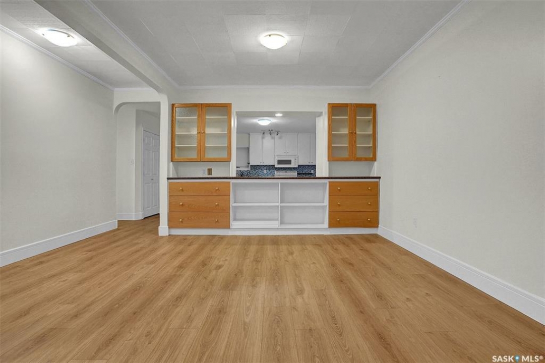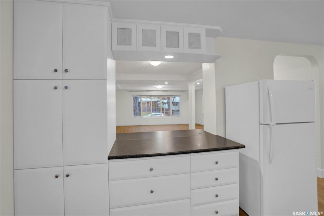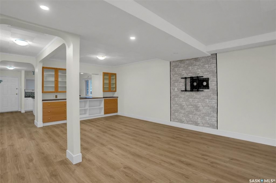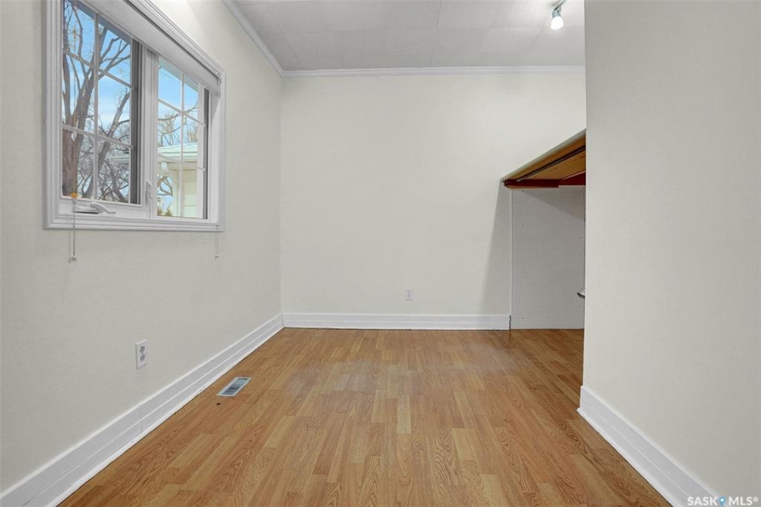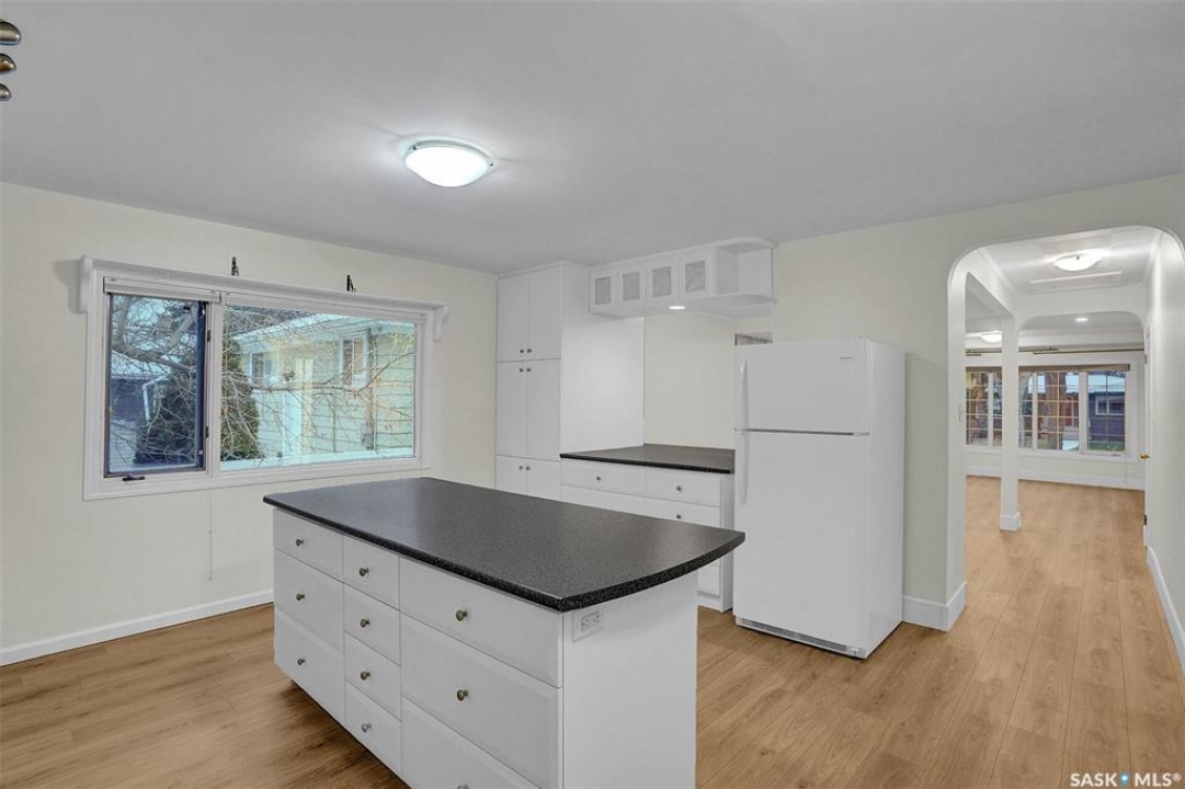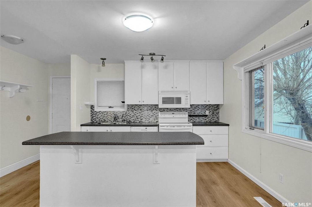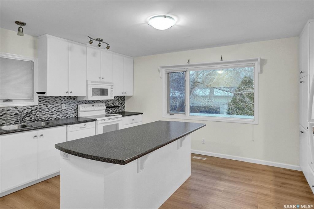 Located in the desireable Lakeview area. Bright, open, spacious, versatile floor plan! Crisp and fresh, ready for new owners. When you step inside there is a charming entry with the character of 1953 then modern updates with laminate flooring, updated windows, bathrooms, kitchen, sunroom and the list goes on and on. Functionality: the front room was a bedroom and the owners added updated plumbing and venting for main floor laundry: the choice is yours'. The front living room with charming bay window extends to the sitting area with TV mount and then there is build in cabinetry for a dining area if you so desire. The custom designed kitchen pops with white cabinetry and tons of natural light. Lots of drawers and counter space plus a centre island. The primary bedroom can accomodate a king size bed plus it has 2 closets and entry to a main floor powder room. The two other bedrooms are a good size. A apcious main bath completes this level. Downstairs you find a room with a closet and window (it may not be standard egress size) that is insulated and drywalled: just needs ciling and flooring. The family room is very large, has 3 windows and there is a 3/4 bath. A sunroom 23.11 x 11.9 (2012) with 2 person hot tub is off the kitchen. Sunroom floor is covered with a waterproof lawyer below the indoor/outdoor carpeting. Gas line for BBQ. The 24 x 24 garage (2006) is insulated and drywalled. Wired for 220V. Attached shelving and flip up work tables are included. Fully fenced back yard with artifical turf (new summer 2025) , rubber tile patio,front deck is 8 x 16. Shingles updated June 2024. Drain lines under basement floor were replaced in the late 1990's. Main sewer line was replaced in the mid 2000's. (not City portion that goes under sidewalk). Permit and plans for the 576 sq addition from 1994 are available. Definetly a home to check out. Offers will be viewed on December 1, 2025 Regina time: ash your real estate professional for details.