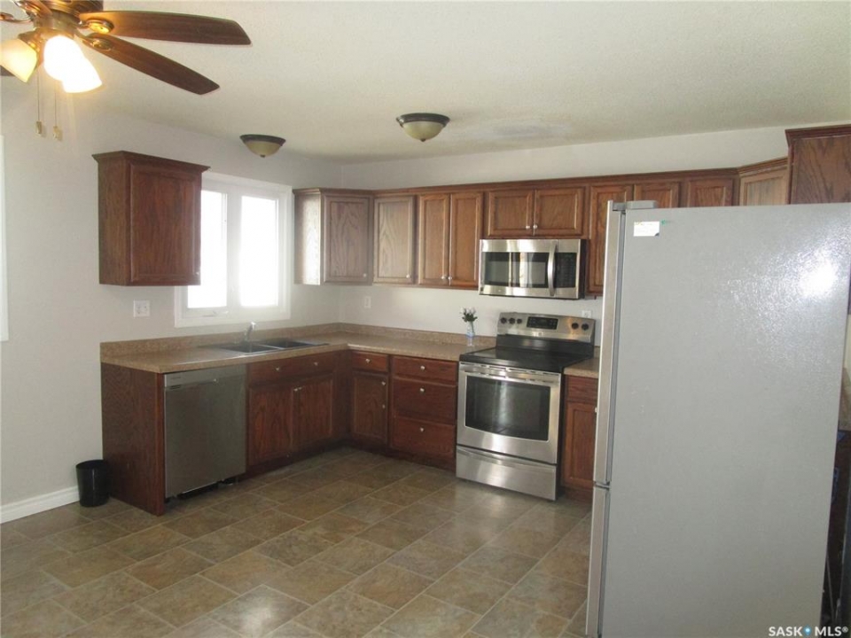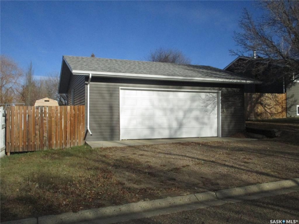 Attractive Raised Bungalow in Coronach, Saskatchewan. Ideally located on a corner lot . Features 28 x 25 foot garage with parking in front.. On the side is a double driveway leading to the fenced back yard . Find privacy and a lovely area for your family and ideal as well for your dog. Stepping into this home you will find a very spacious kitchen with lots of natural light. Counter tops on 3 sides with cabinets above them. Room for a large table in this room.. Updated Dishwasher, Fridge. Stove, Micro wave fan. 3 bedrooms on the main floor , the Primary bedroom features a 3 piece en suite. Main bathroom is completed with a quartz counter with dual sinks and a bathtub with a shower. Living room features room for all your oversized furniture and a big screen. The bay window really dresses up this room. Basement has a suspended ceiling and 2 more bedrooms and a den. The family room for all your entertainment. Laundry room is very spacious as well. Breaker box is 200 amp. The garage has a walk in door that you may enter from the backyard. It is truly a great garage, as you may see in the pictures, with a smooth even cement floor and a large automatic overhead door There is a large shed in the back yard. The windows are all PVC and this Home has been freshly painted . Come have a look and fall in love !