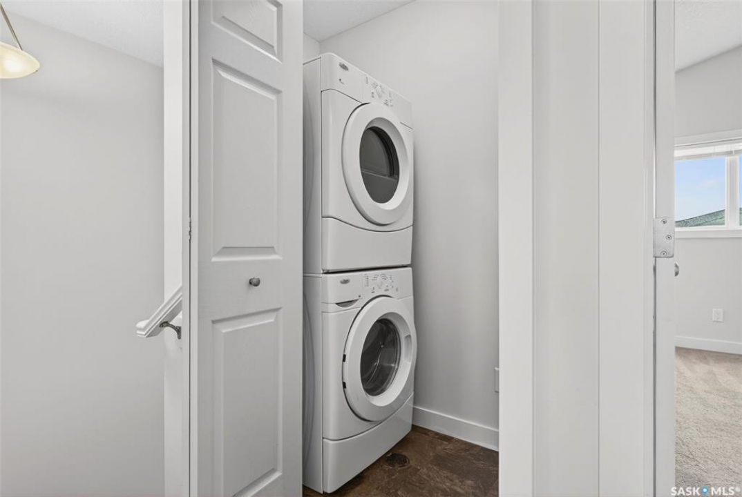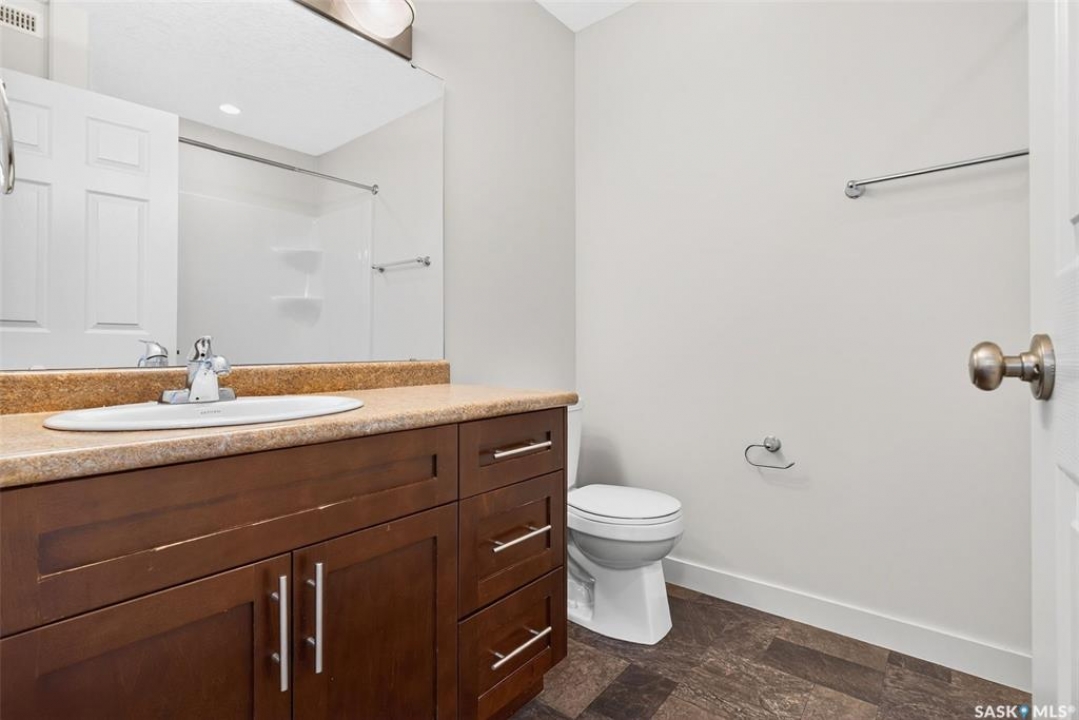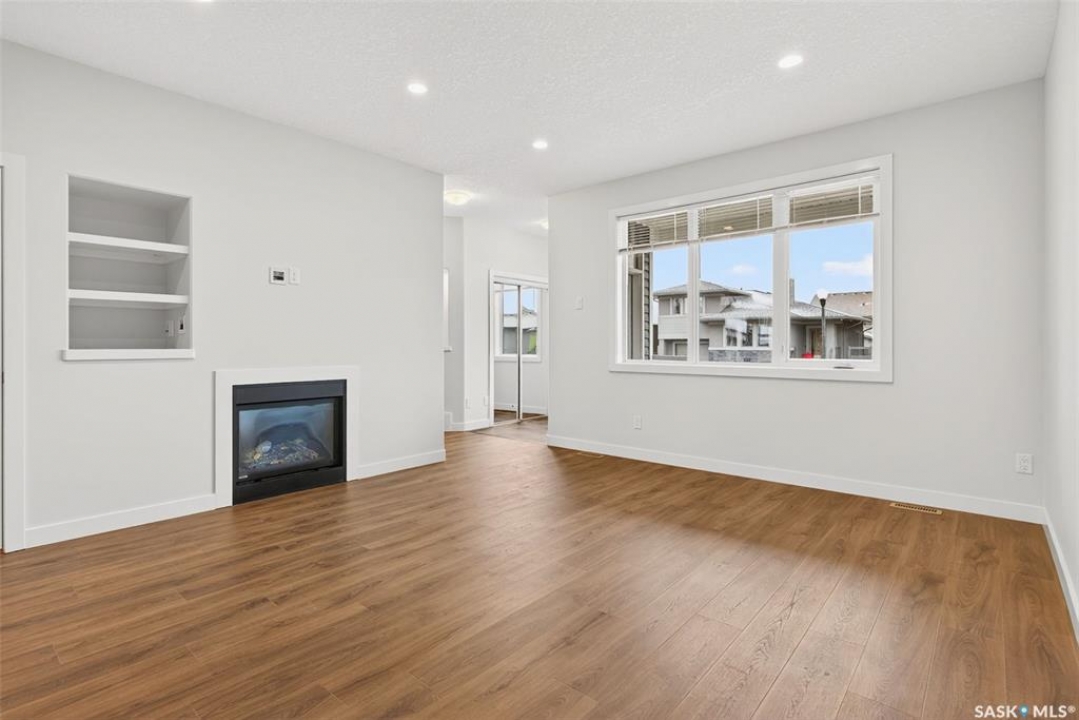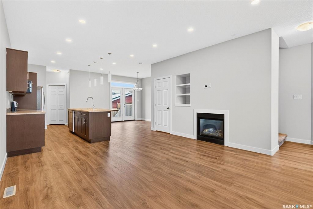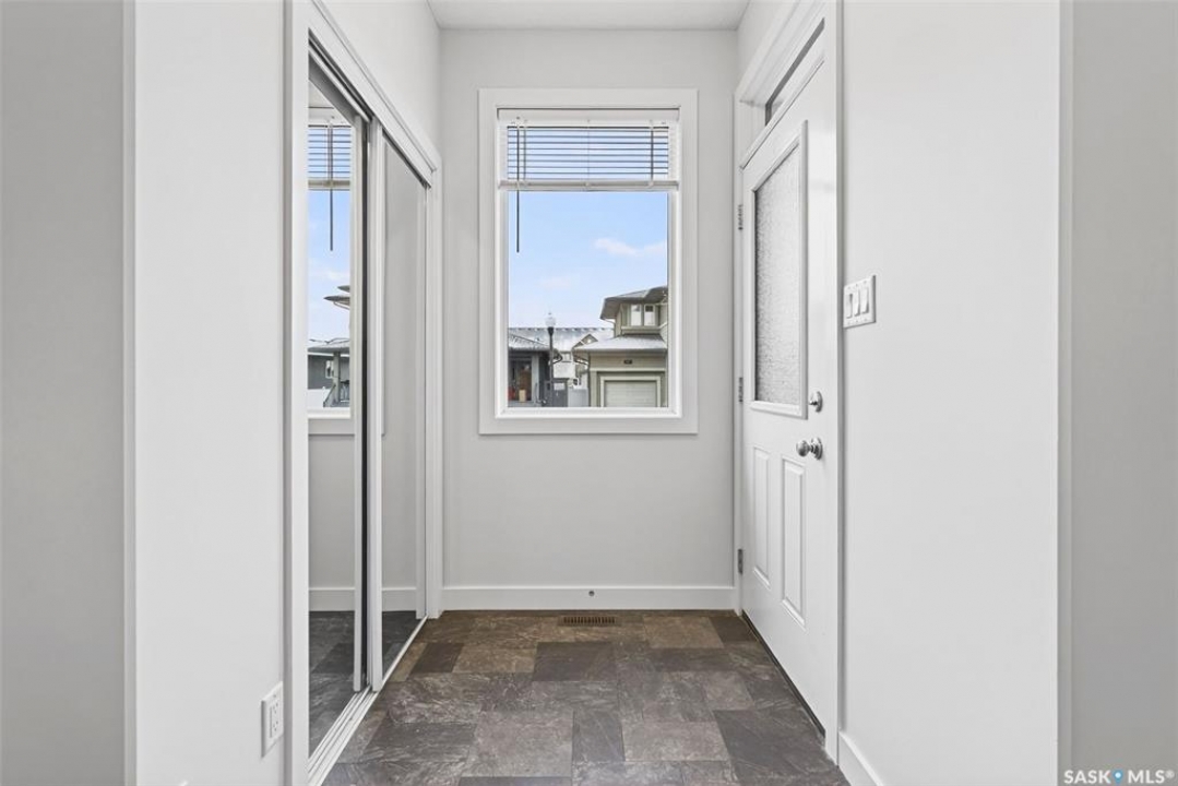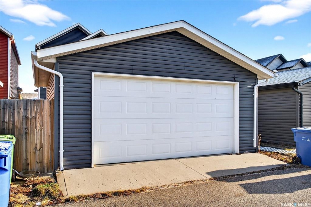 Welcome to 4125 Green Olive Way E, a beautifully maintained two-storey home located in the heart of Regina's sought-after Greens on Gardiner neighbourhood. Built in 2012 and offering 1,468 sq ft of well-designed living space, this property delivers modern comfort, family-friendly function, and excellent curb appeal. The main floor features a bright, open layout with a spacious living room finished in warm laminate flooring and accented by a cozy gas fireplace—perfect for relaxing evenings at home. The kitchen offers great counter space, a central island with an eat-up counter, and a functional layout that flows into the dining area, making everyday meals and entertaining a breeze. A convenient 2-piece bathroom completes the main level. Upstairs you'll find three comfortable bedrooms, including a generous primary suite with a 3-piece ensuite and a walk-in closet. Two additional bedrooms, each finished with soft carpet, share a well-appointed 4-piece bathroom—ideal for children, guests, or a home office setup with 2nd floor laundry for added convenience! The unfinished basement with a separate side entrance provides a blank canvas for your future development plans, offering excellent potential for a future suite (subject to municipal approval). Outside, the property sits on a 3,121 sq ft lot with a fenced backyard, lawn space, and a double detached garage that provides secure parking and extra storage. Located in a vibrant, walkable community close to parks, schools, shopping, restaurants, and all the amenities southeast Regina is known for, this home is an excellent option for families, first-time buyers, or anyone seeking a move-in-ready property in a premium location. Don't miss your chance to make this one yours!