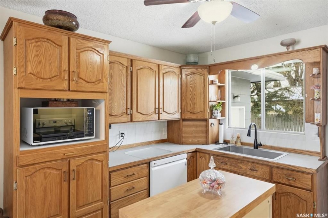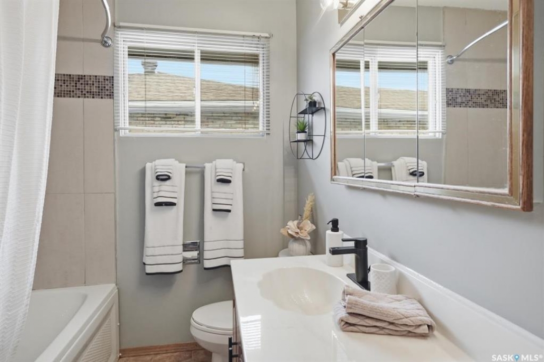 Prime Hudson Bay Park Location! Situated close to schools, parks, and shopping, this 1,047 sq. ft. bungalow offers exceptional convenience and charm. The home sits on a spacious pie-shaped lot and features great curb appeal highlighted by attractive fieldstone accents on the exterior. This well-maintained, one-owner home has seen thoughtful updates over the years, including newer shingles, fresh exterior paint, oak kitchen cabinetry, laminate flooring, and a newer furnace and water heater. The main floor offers three comfortable bedrooms, with an additional bedroom located in the basement. The lower level is partially developed—perfect for customizing to suit your family's needs. An oversized attached garage adds extra value and functionality. Homes like this don't come up often in such a sought-after neighbourhood. A wonderful opportunity for families or anyone looking for a solid home in a desirable area!