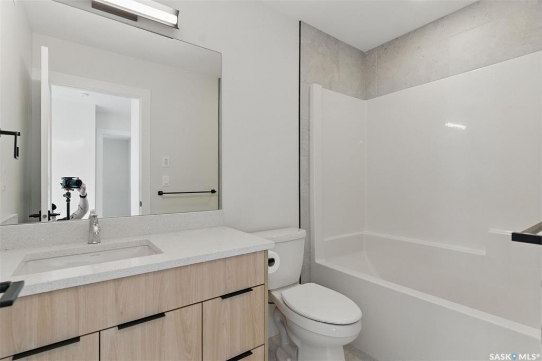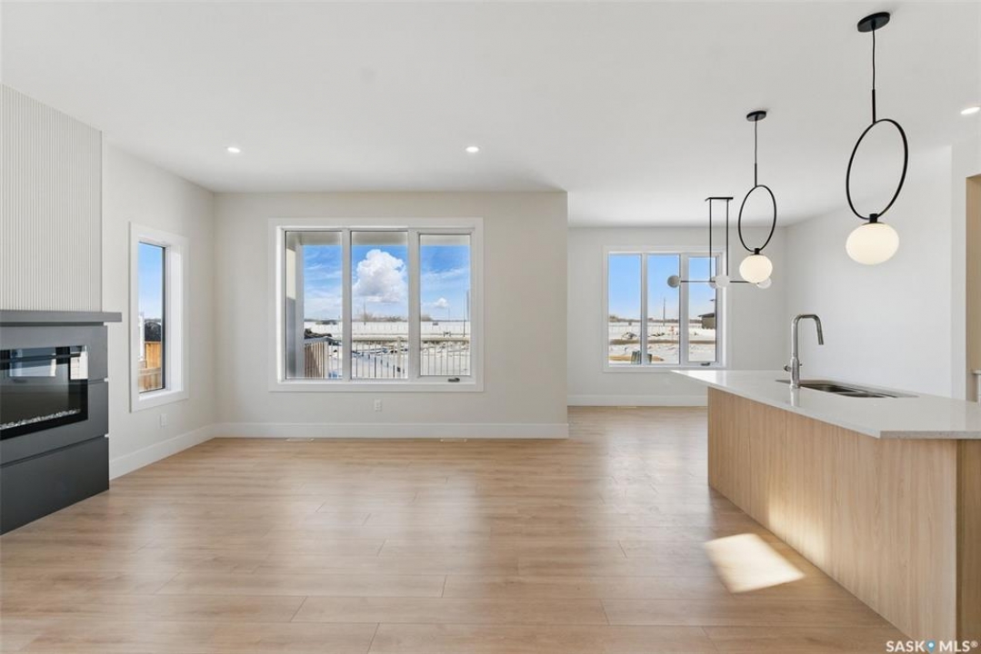 Welcome to 218 Veterans Drive! This beautiful new home is located in Warman, close to all amenities. Walking in you are greeted with plenty of natural light. In the great room you can cozy up by the fireplace on cold days. With the Open Concept this home is great for hosting! The Kitchen has plenty of counter space, under cabinet lighting to have both ambiance and ample task lighting, and a walk thru pantry that leads to the mudroom to make unloading groceries easy. Going up the staircase you can look down into the foyer over the banisters. In the primary room you have a feature wall, plenty of natural light, a 5-pc ensuite, and a walk-in closet! There is also a laundry closet located conveniently by all 3 bedrooms. Upstairs there is a 4-Pc Bathroom and a family room. Contact your Realtor today to not miss viewing this beautifully crafted home where luxury meets comfort! Under construction. Finishes may vary from listing pictures.