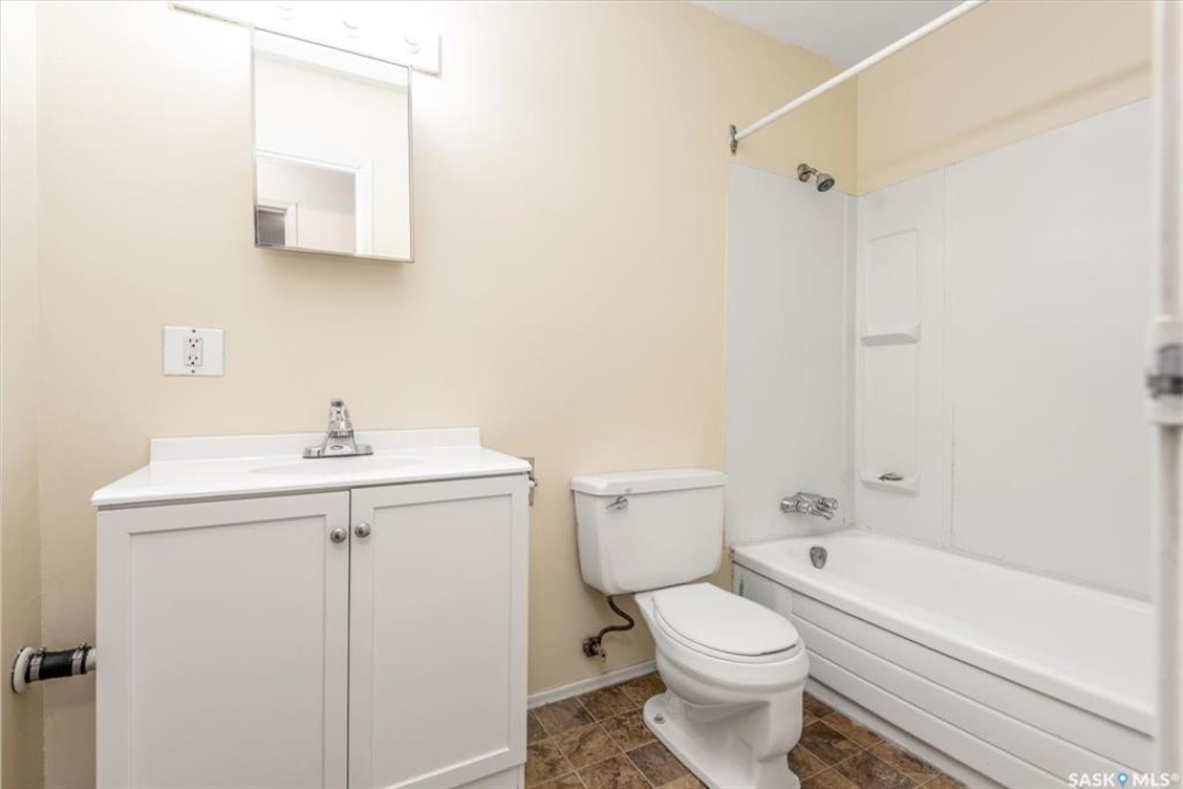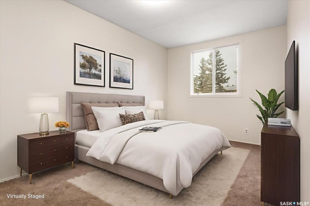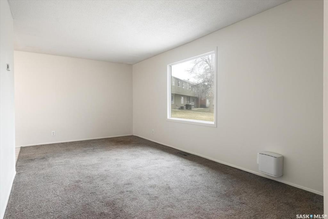 Welcome to 4118 Castle road, a townhome style condo in the desirable neighbourhood of Whitmore park! The mature, south end neighbourhood features an elementary school, high school, a gym, shops, restaurants, churches, and a community garden. This property is placed in an outstanding location, just steps away from the University of Regina, SaskPolytech, and ring road for convenient access to the rest of the city. The unit faces onto a green space and is situated across the street from a park for those with children. Fortunately, the personal parking space is in close proximity to the unit and has a power outlet for winter. As you step inside, there is a front closet and 2pc bathroom off the entrance, which opens up to a spacious living area with a big window to allow ample natural light into the space. Upstairs there is a total of three bedrooms, one of which being the primary that includes a large walk in closet. The second floor also includes a full 4pc bathroom and linen closet. The unit has been recently refreshed with new light fixtures, bathroom vanities, and fresh paint, perfect for a more worry-free move in. The basement allows room for new owners to truly make the space their own, whether you want to finish it into a cozy rec room or use it for extra storage. Condo fees include garbage, snow removal, lawn care, exterior maintenance, sewer, reserve fund, and even water to assist in affordable living! Whether you're a student, parent of a student, an investor, or looking for low maintenance living, this property is worth taking a look at!