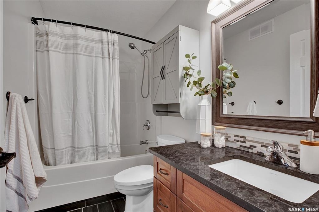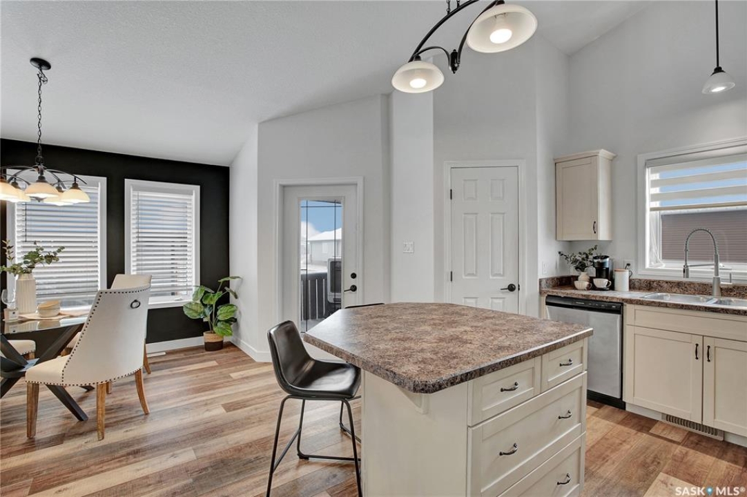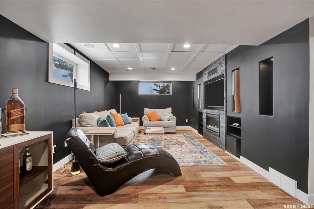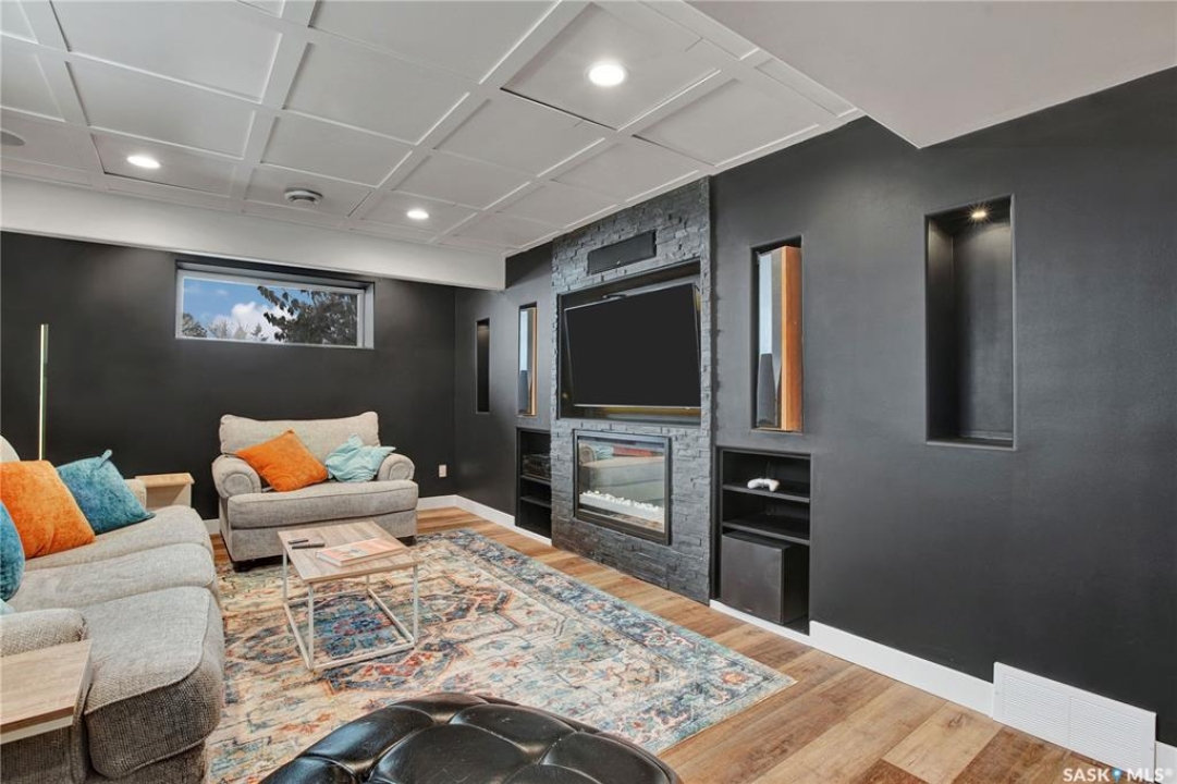 Welcome home to this beautifully updated, turnkey bungalow situated on a desirable corner lot across from green space. Offering over 1,300 sqft of thoughtfully designed living space with 5 bedrooms and 3 bathrooms, this home blends modern style, comfort, and exceptional functionality. Step inside to discover a collection of upgrades that truly set this property apart. Recent improvements include new shingles, a fresh coat of paint throughout, luxury vinyl plank flooring on both levels, and epoxy flooring in the heated garage, all contributing to a clean, modern aesthetic and lasting durability. The main floor showcases a bright, welcoming layout featuring a spacious living room and an inviting kitchen equipped with a gas range, new dishwasher, and a functional island. The adjoining dining area overlooks the beautifully landscaped backyard, creating the perfect setting for everyday meals and gatherings. A convenient mudroom adds to the thoughtful design. Down the hall, you'll find two well-appointed bedrooms and a primary suite complete with a 3-piece ensuite. The fully developed basement expands your living space with two additional bedrooms, a stylish 3-piece bathroom featuring a relaxing steam shower, a dedicated games room, and a cozy family area highlighted by a fireplace, making it an ideal space for both relaxation and entertaining. Step outside to experience the impressive outdoor retreat. The backyard is well designed with a large deck, a large pergola perfect for summer entertaining, and a welcoming fire pit area. It's a space you'll love spending time in throughout the warmer months. Additional highlights include a prime location close to schools, parks, shopping, highway access, and the renowned Legends Golf Course. With extensive updates, modern finishes, and a highly desirable setting, this move-in-ready home truly offers the complete package.