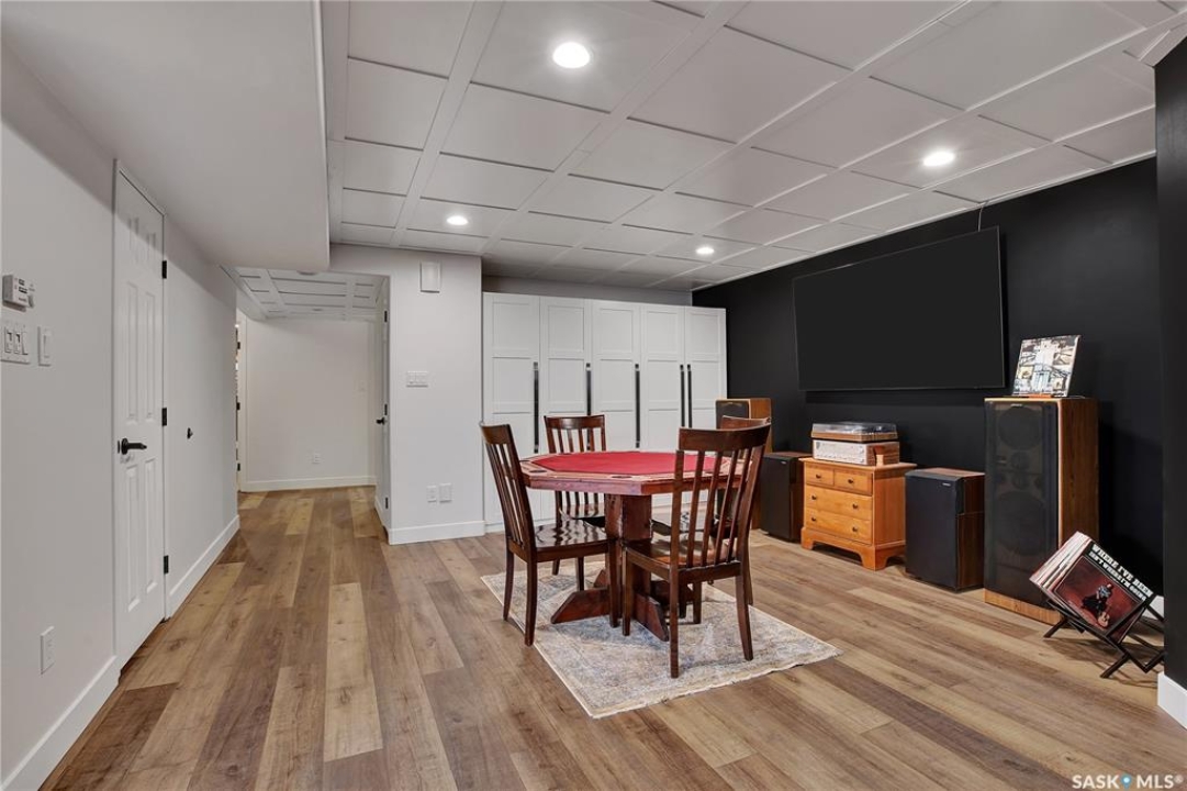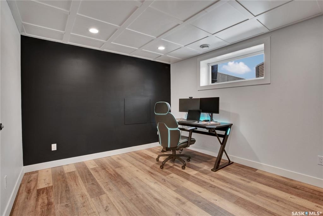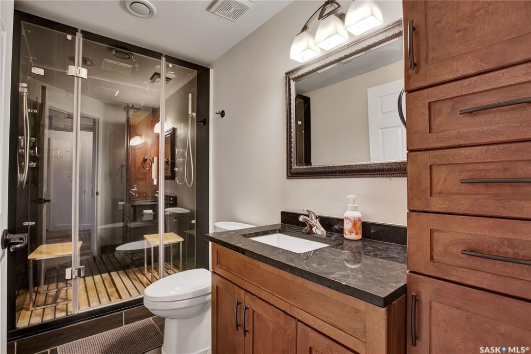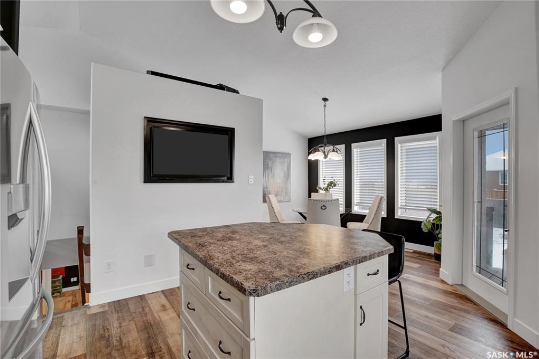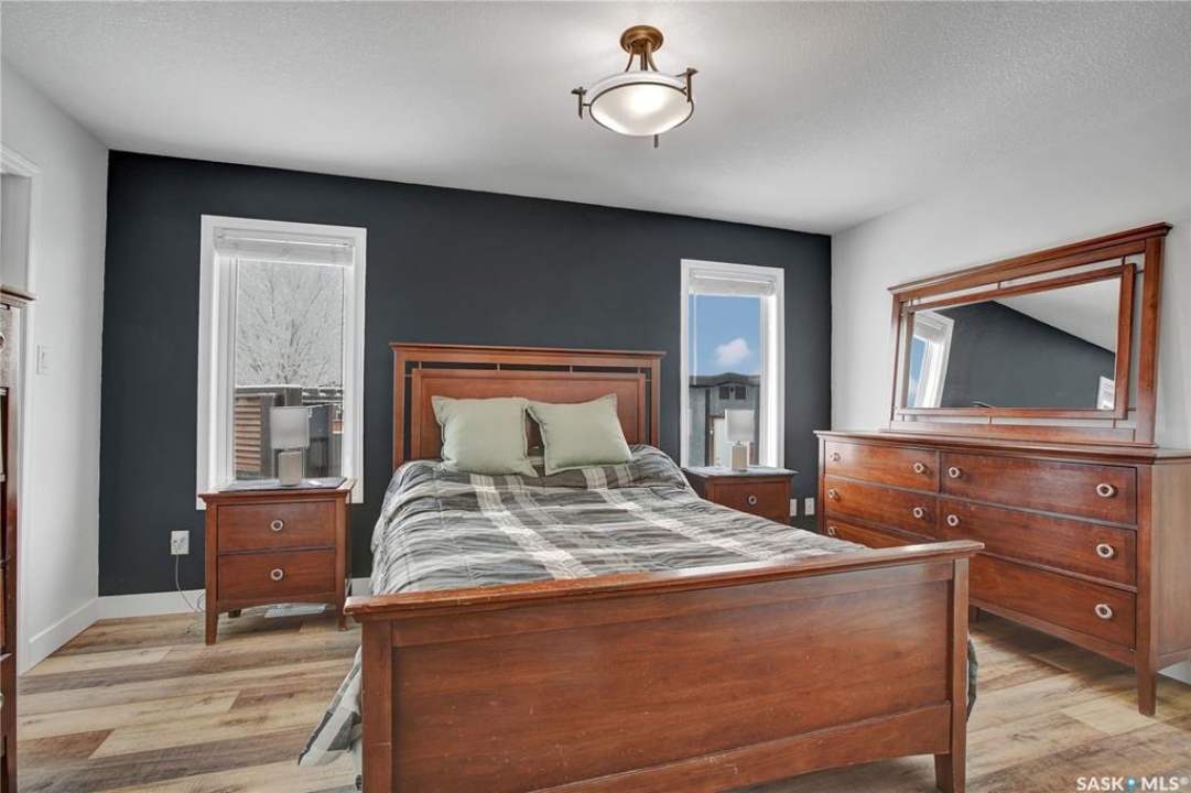 Welcome home to this beautifully updated, turnkey bungalow situated on a desirable corner lot across from green space. Offering over 1,300 sqft of thoughtfully designed living space with 5 bedrooms and 3 bathrooms, this home blends modern style, comfort, and exceptional functionality. Step inside to discover a collection of upgrades that truly set this property apart. Recent improvements include new shingles, a fresh coat of paint throughout, luxury vinyl plank flooring on both levels, and epoxy flooring in the heated garage, all contributing to a clean, modern aesthetic and lasting durability. The main floor showcases a bright, welcoming layout featuring a spacious living room and an inviting kitchen equipped with a gas range, new dishwasher, and a functional island. The adjoining dining area overlooks the beautifully landscaped backyard, creating the perfect setting for everyday meals and gatherings. A convenient mudroom adds to the thoughtful design. Down the hall, you'll find two well-appointed bedrooms and a primary suite complete with a 3-piece ensuite. The fully developed basement expands your living space with two additional bedrooms, a stylish 3-piece bathroom featuring a relaxing steam shower, a dedicated games room, and a cozy family area highlighted by a fireplace, making it an ideal space for both relaxation and entertaining. Step outside to experience the impressive outdoor retreat. The backyard is well designed with a large deck, a large pergola perfect for summer entertaining, and a welcoming fire pit area. It's a space you'll love spending time in throughout the warmer months. Additional highlights include a prime location close to schools, parks, shopping, highway access, and the renowned Legends Golf Course. With extensive updates, modern finishes, and a highly desirable setting, this move-in-ready home truly offers the complete package.