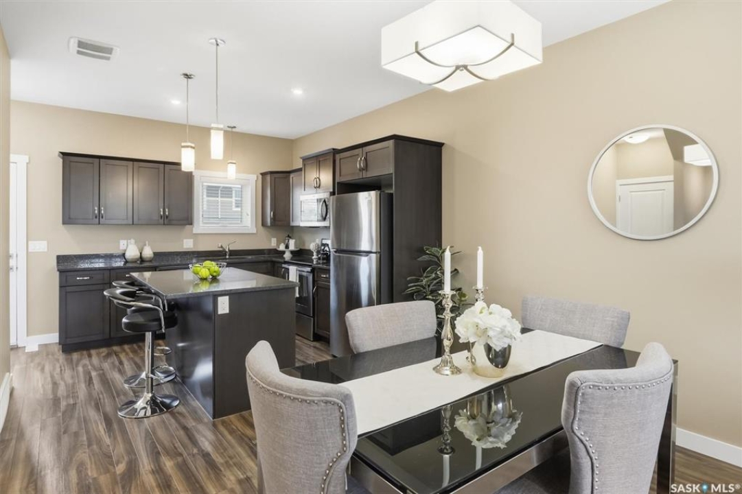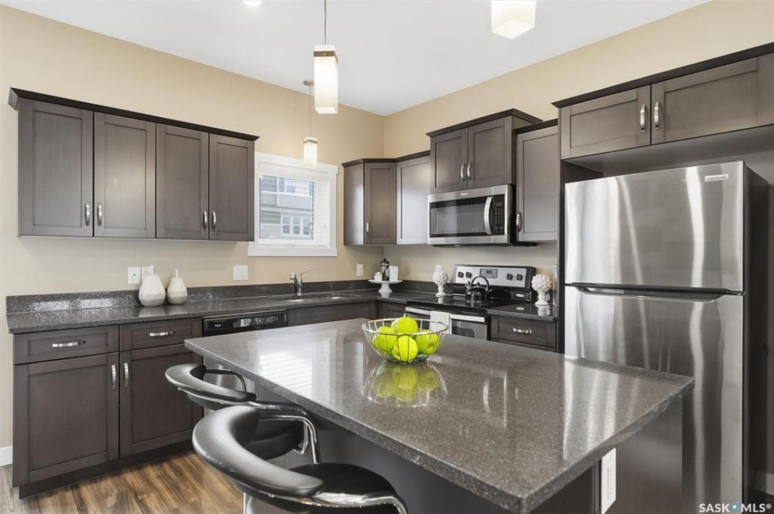 ** Open house Sunday November 30th from 4-6PM** Current Condo fees only $258/month!! Welcome to 1216 Pringle Way, a charming townhouse in the sought-after Living Stone community of Stonebridge. This two-story home offers 2 bedrooms, 2.5 bathrooms and two electrified parking spots, plus convenient on-street parking. This homes sets up with the sunrise coming through your east windows (rear deck) in the morning, and the sunset off your west facing front deck. The main floor includes a cozy living room, a dining area, a 2-piece bathroom, and a well-equipped kitchen. Upstairs, you'll find two bedrooms, a large laundry room, and 2 bathrooms one with a 4 piece ensuite and another 4 piece common bathroom. The unfinished basement is ready for future development—potentially an extra bedroom or bathroom. This unit features air conditioning, a natural gas hook up on the deck, window coverings, durable laminate floors, and stylish quartz countertops. The community is ideally located near parks, schools, and numerous amenities, with easy freeway access. Pet owners will appreciate that the pet policy allows up to two pets, pending approval. Stonebridge is a welcoming, family-friendly neighborhood with biking and walking paths, convenient access to the University of Saskatchewan, and nearby shopping options including Sobeys, Walmart, Home Depot, and more. Local dining options include Brown's and The Canadian Brewhouse, as well as a range of salons, banks, a Co-op gas station, and Motion Fitness. This development offers everything you need, with easy access to all major amenities and transportation. Don't miss out—call now to schedule a private viewing!
