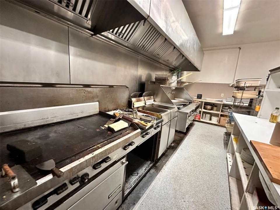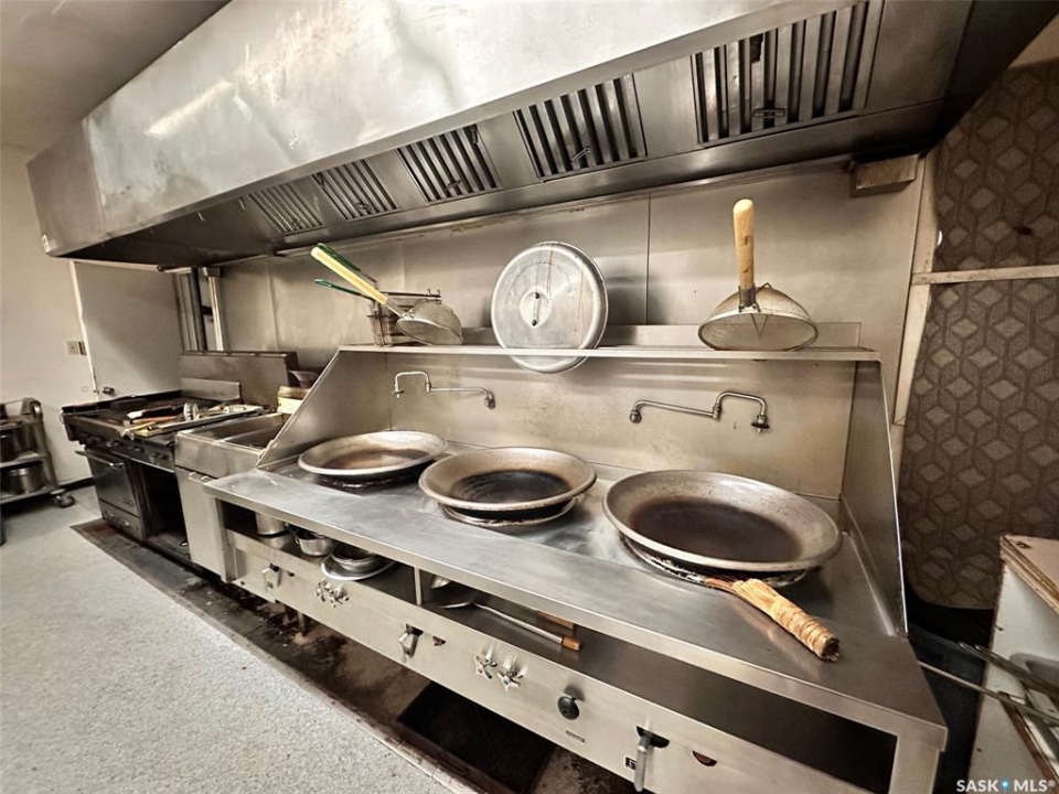 The iconic Ming's Wok is a prime opportunity for the next Main Street restaurant in the busy town of Spiritwood. This restaurant with seating for 100 comes fully equipped and ready to cook, with a cafe on one side and large dining room & beverage room on the other, both with air conditioning. The kitchen boasts a new dishwasher, three woks, grill, deep fryer and all the space you could want for prep, along with a walk-in cooler with shelving. An area with storage, freezers and laundry leads to a three-bedroom suite, featuring a living room, full bathroom and office. The side and back yard offer a garden space with fenced deck, two storage sheds and room to park two vehicles. Call your agent to book a showing.