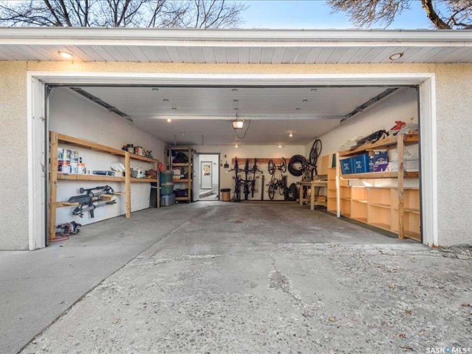 For more information, please click the "More Information" button. 1.5 blocks from the Kramer/IMAX theatre, you're steps away from Wascana Park with easy access to walking/running/biking trails, BBQ picnic areas, playgrounds, & all park festivals/activities. Miller High School & Balfour Collegiate are 2 blocks away, & Prairie Sky Elementary School is just a short 15 minute walk! A grocery store, Coffee Shops, Restaurants, a Gas Station, a Public Library Branch, and Hair Salons, are nearby amenities, giving this location a Walking Score of 84! Plus, it's a 5 minute drive to Wascana Marina to rent kayaks, canoes, or paddle boats! Stepping inside the front door, you'll see a spacious, open concept living room/dining room/kitchen. All windows have Hunter Douglas blinds providing natural insulation & the desired level of sunshine into the rooms. Durable, vinyl plank flooring covers this entire level. The front room area holds a 3-piece living room set, & the dining room comfortably holds a 6-seater table & a sideboard. The kitchen includes Orchard Park custom cabinetry & moveable island, all Kenmore appliances, & a custom Jeld-Wen Premium vinyl picture window. The Master bedroom features Jeld-Wen Premium vinyl awning windows, & a bonus closet. The finished basement can be used as potential income space. Carpet tile floors runs throughout the landing, hallway, and recreation room. Vinyl plank covers the bathroom & bedroom floors. Dimmable pot lights are in all carpeted rooms, & the wall-mounted Sony 40" flat panel TV is included. The storage room contains the sub-pump & plenty of shelving/storage. The laundry/furnace room includes a dryer, a washer (capable of handling very heavy loads), and a storage cupboard. The backyard has a good-sized concrete patio & garden spaces, plus a no-maintenance deck. The 2-car garage is insulated & electrified and backs onto a paved lane.