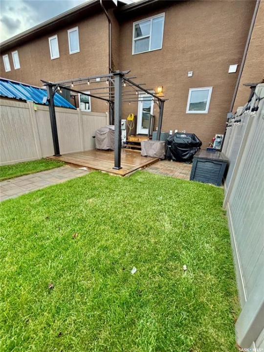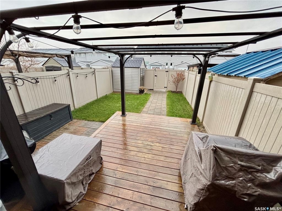 Welcome to 7989 Canola Ave. This beautiful 2-bedroom, 2.5-bath townhome boasts over 1,400 sq ft of usable living space and is located in Regina's booming Westerra neighbourhood, close to the location of the new Costco and other upcoming developments. Inside, you are greeted by the open concept main floor, complete with a large living room, nicely laid out kitchen that includes a large eat-in peninsula, tons of natural light and ample storage. Upstairs, you'll find the first bedroom, which is serviced by its own 4-piece ensuite and walk-in closet. Down the hall, you'll find the second-floor laundry on your way to the primary bedroom. The primary provides lots of room to unwind and relax, and is complete with a large walk-in closet space and a private 4-piece ensuite. Downstairs in the basement, there is even more living space that could easily be converted into a third bedroom if needed, or you could just keep it as a great space to hang out and enjoy time with friends and family. Outside, you'll find your own little private oasis, complete with a patio, gazebo, and lawn area for extra living and entertaining space! Book your private viewing today!