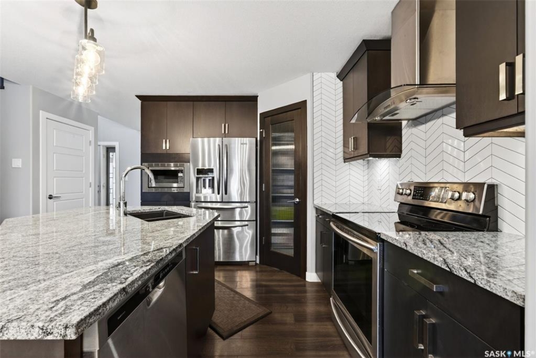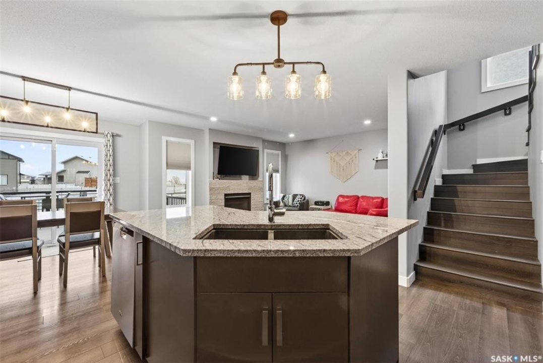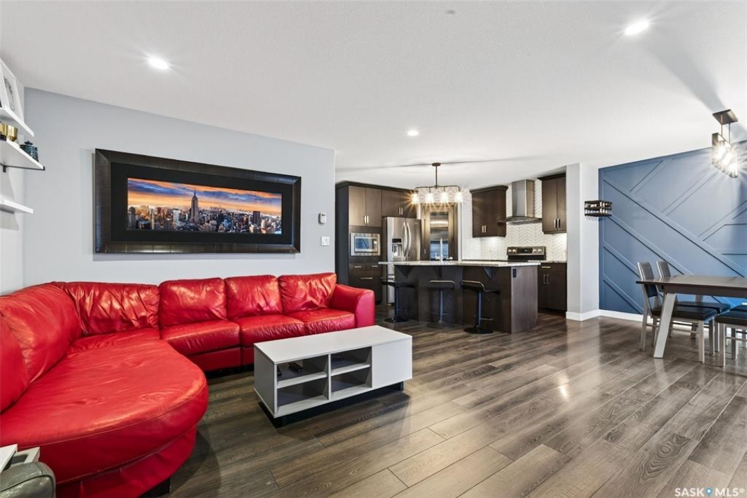 This 1562 Sq. Ft. home is located on a quiet crescent in Harbour Landing backing green space. This home features wonderful open floor plan to main. As you enter this home you will be greeted by 17 ft. ceiling in foyer, a large upgraded kitchen that opens to a fantastic great room and dinning room. Upstairs you will find a spacious primary with large primary closet & ensuite. Completing the second floor are 2 good sized bedrooms, a bath and 2nd floor laundry. Downstairs is completely finished with a bedroom, full bath and large rec room. Outside you will find a fully fenced landscaped yard with deck & patio. Please view this home, You won't be disappointed.