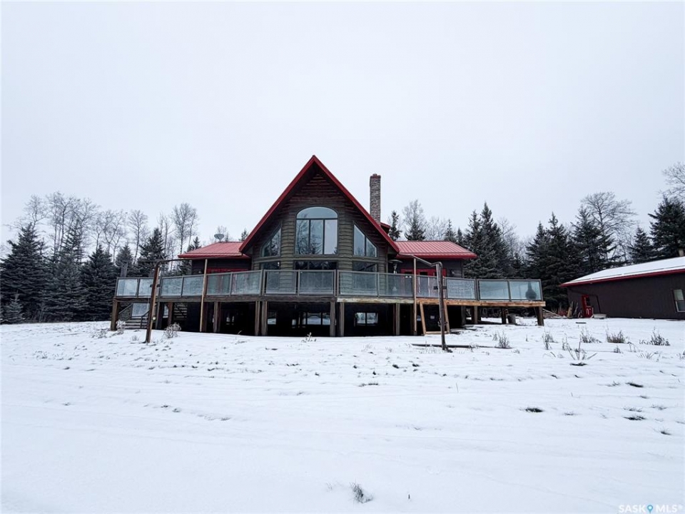 House is custom storey and a half walkout home is situated on 5.07 acres just minutes south of Meadow Lake. Built in 2008 with efficiency in mind, this home is well insulated with extra thick walls, and provides the reliability of geothermal energy to heat and cool to your comfort level. Rich hardwood floors throughout much of the home, hickory cabinetry and granite in the massive kitchen. The living room with a cozy fireplace is the main focal point with a massive wall of windows with views of forest and sky. Open concept main level provides the space to entertain family and friends on all occasions. The main level primary bedroom is spacious with a walk in closet and 5 pc ensuite as well as patio doors leading to the wraparound deck. There is a designated main floor office space, laundry room as well as access to the attached garage as well. The 2nd level offers two large bedrooms, a custom 3 pc bathroom and a nook area overlooking the living room. Lower level provides an additional 2 bedrooms, a 4 pc bathroom with great storage, family room, gym area, utility room and great storage rooms. The yard site is surrounded with mature trees and the Provincial forest right in your backyard! For more information don't hesitate to call.