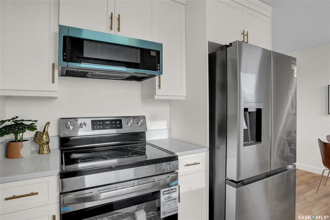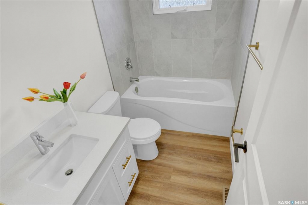 Discover the charm and modern convenience of this affordable, newly renovated home with no backyard neighbours. The property has been tastefully renovated throughout the interior, making it both stylish and functional. This is the cutest home, welcoming foyer, seamlessly flowing into the Living, Dining and Kitchen with new stair banister. Updated windows only enhance the luxury vinyl floor that flows throughout the main floor filling the home with natural light. The kitchen enjoys quartz counters, new stainless steel kitchen appliances including fridge, stove, built in dishwasher and microwave hood fan. You will love the gold hardware and new lighting fixtures. The main floor hosts 2 bedrooms and this floor is complete with an updated 4pc. Bath with soaker tub with tile surround. The lower level is finished boasting a family room, with game area or a perfect spot for an office/craft or workout space. This floor is complete with a great sized 3rd bedroom, 3 pc. bath with full tub surround w/seat, laundry & storage in the utility room. This family home boasts s high efficiency furnace, water heater, new electrical panel and has a sump pump. The south facing yard is fully fenced with a wonderful deck accessible from the dining area, it is perfect for outdoor relaxation, entertaining and enjoying the sun. The landscaping is an open canvas to create your own oasis and has room to create a garden and the kids to play. The Bonus is the Dbl. Det. Garage, insulated, with alley access which is in addition to the front drive. This home represents an excellent opportunity to own a like-new property in a beautiful family-friendly area, steps to walking paths, and recreational parks. CLICK ON THE MULTI MEDIA LINK FOR A FULL VISUAL TOUR, and call today and let make your next move to live more beautifully. (Note bedrooms and lower level family room are virtually staged).