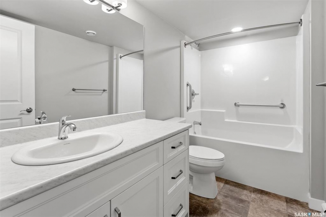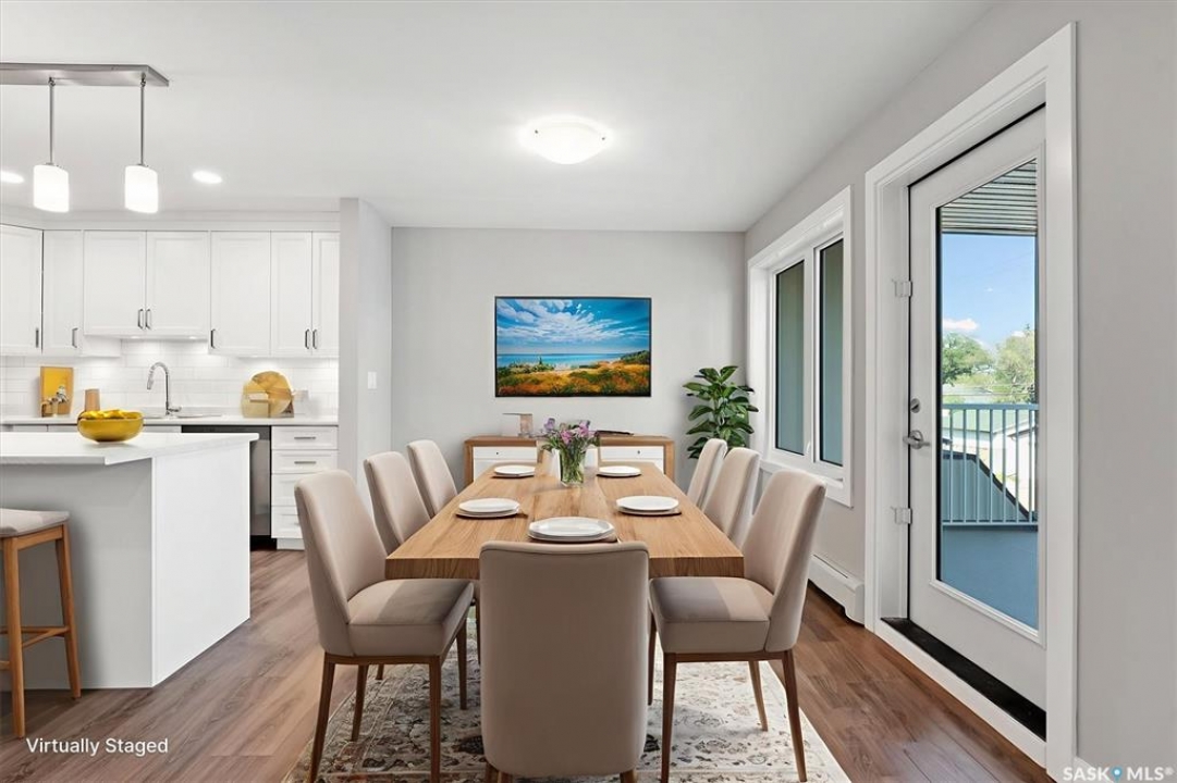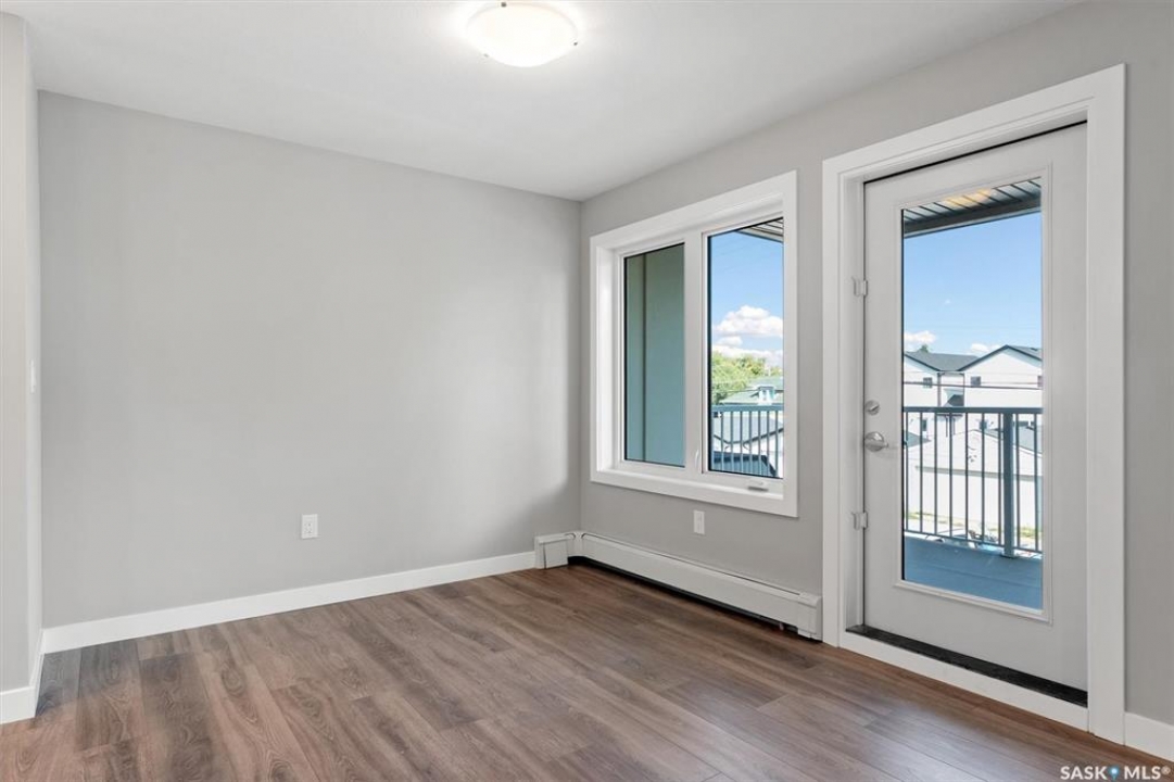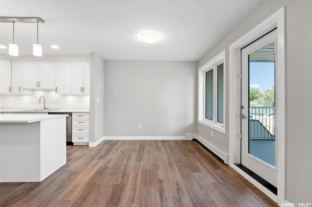 Welcome to #202 - 318 108th Street in Sutherland! If you're seeking a brand new condo in a prime location near the University of Saskatchewan and the upcoming SaskPolytech, this might be the perfect fit for you! Featuring light grey walls, barnwood-style vinyl plank flooring, and crisp white cabinets, this unit boasts a timeless color palette. This second-floor corner unit offers two spacious bedrooms, one of which includes a convenient 2pc ensuite. Upon entering the suite, you'll be greeted by a generous foyer complete with a large front entry closet. The kitchen is equipped with plenty of cabinetry, brand new stainless steel appliances, and an island featuring stylish pendant lighting. From the dining area, you can access a balcony that includes a natural gas BBQ hookup. The living area is filled with natural light, thanks to an abundance of windows facing a peaceful residential area. This home features vinyl plank flooring throughout the primary living spaces and bedrooms, while the entryway and bathrooms are finished with linoleum for easy maintenance. Please note that some minor touch-ups are still in progress, but everything will be finished before the possession date! Call your favorite Realtor � today to take a look at this lovely condo!