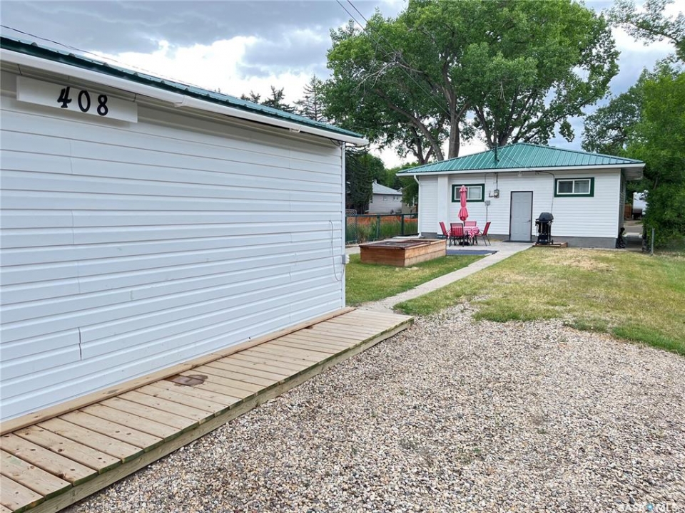Low maintenance living with outdoor appeal. Welcome to this inviting 2-bedroom home nestled in the heart of Maple Creek, offering comfort, convenience in an easy-to-manage package. With approximately 780 square feet of living space, this property is ideal for first-time buyers, retirees or downsizers. This could even be an investment property; it's a great size for an Airbnb. The bathroom has been thoughtfully updated and now boasts a stacking washer and dryer, making laundry day a breeze. Recent upgrades include new vinyl siding and a durable metal roof, both installed within the past five years for enhanced curb appeal and peace of mind. The seller states that the hot water tank was replaced in 2023, and the furnace has had regular maintenance checks; seller claims it works well. adding further value and efficiency to the home. Situated on a smaller lot, the outdoor space is perfectly designed for low-maintenance enjoyment. Relax or entertain on the lovely patio, and indulge your green thumb with the raised garden beds. An added bonus is the versatile outbuilding—perfect for motorcycle parking, tool storage, or extra space for your hobbies. Don't miss the opportunity to make this well-cared-for property your new home!