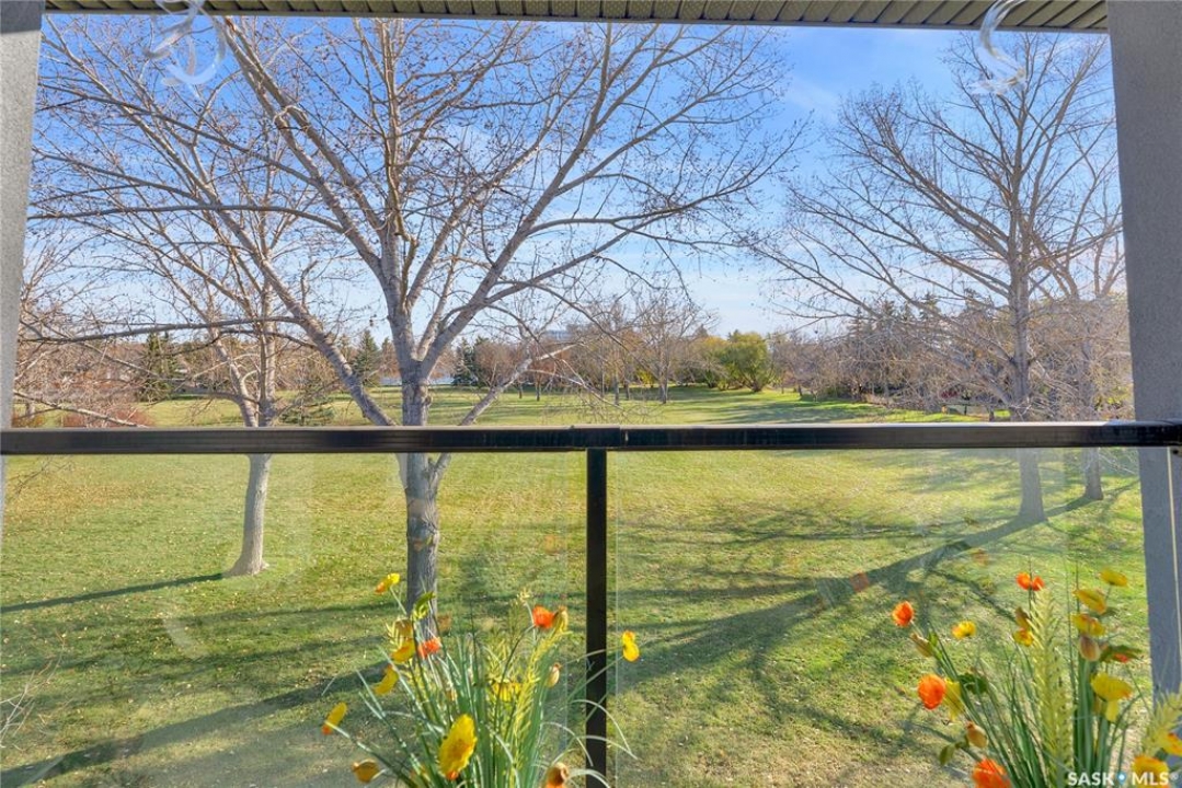 Experience refined condo living in this executive-style 1,475 sq. ft. residence, featuring two bedrooms plus a den and tucked away in a quiet, secluded location on the second floor with serene views of the park. A spacious front foyer welcomes you into the home, showcasing warm cork flooring and an impressive open-concept layout enhanced by nine-foot ceilings. The bright living room offers a garden door with a Phantom screen leading to a large balcony complete with a natural gas BBQ hookup—perfect for relaxing or entertaining while enjoying the park setting. Adjacent is a generous dining area that flows seamlessly into the dream kitchen. This beautifully appointed space features upgraded horizontal-grain cabinetry, granite countertops, a large centre island, glass-panel upper cabinet doors, convenient pull-out drawers, upgraded stainless steel appliances, and a walk-in pantry. The park-facing primary bedroom is a true retreat, complete with a walk-in closet and a spacious 3/4 ensuite featuring built-in cabinetry and an oversized shower. A generous second bedroom is conveniently located near the full main bathroom. A versatile den or office, along with a dedicated laundry room and separate storage room, adds to the home's functionality. Additional highlights include two heated underground parking stalls and a secure storage locker. Residents enjoy a host of exceptional building amenities such as a guest suite, amenities room, exercise area, visitor parking, main-floor lounge, expansive outdoor patio, workshop, and beautifully maintained grounds. This exceptional property offers comfort, privacy, and convenience—truly a wonderful place to call home!