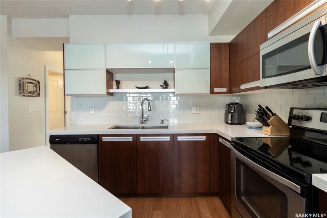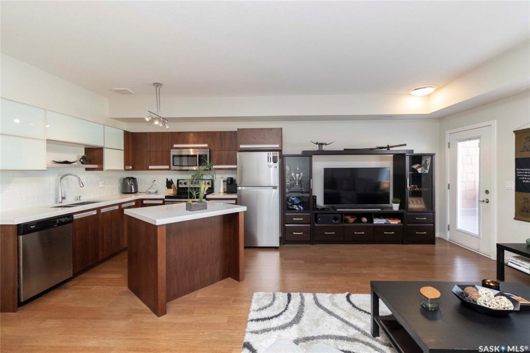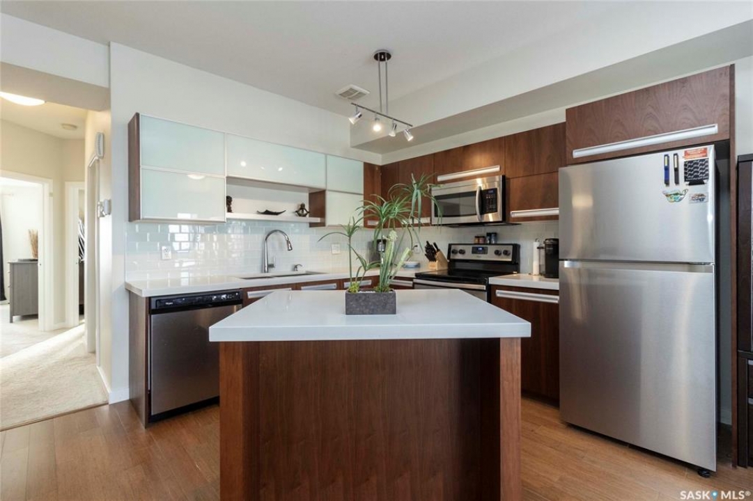 Located in desirable Willowgrove neighbourhood, this well-maintained 2-bed, 1-bath townhouse offers exceptional comfort and convenience, complete with two electrified parking stalls. Step inside to a bright, contemporary, open-concept layout designed to please your sense of style, featuring a large living room that flows seamlessly into a dining area and spacious kitchen with quartz countertops, a tile backsplash, SS appliances and a generous island—perfect for cooking, dining, and entertaining. The roomy laundry area provides valuable extra storage, while central air conditioning keeps the home comfortable all summer long. Residents enjoy access to an impressive clubhouse equipped with a pool, fitness centre, and a function room ideal for hosting or relaxing. This particular unit boasts a prime location near the south entrance of The Lofts. Close to parks, schools, shopping, transit, and offers easy access to College Drive. A perfect blend of style, comfort, and community living awaits.