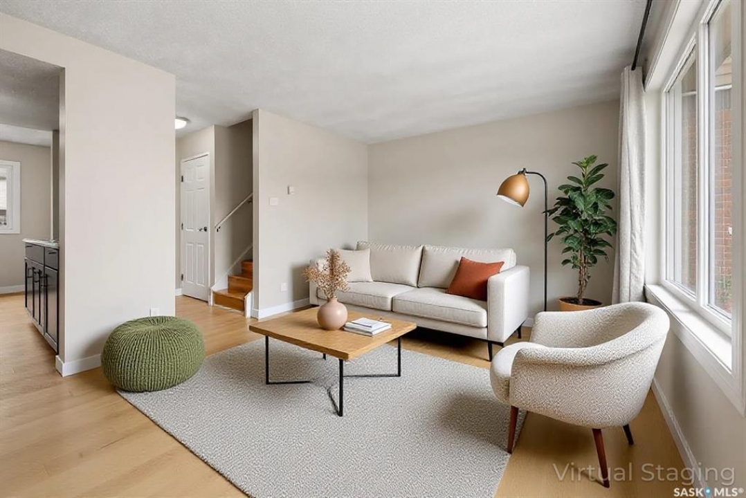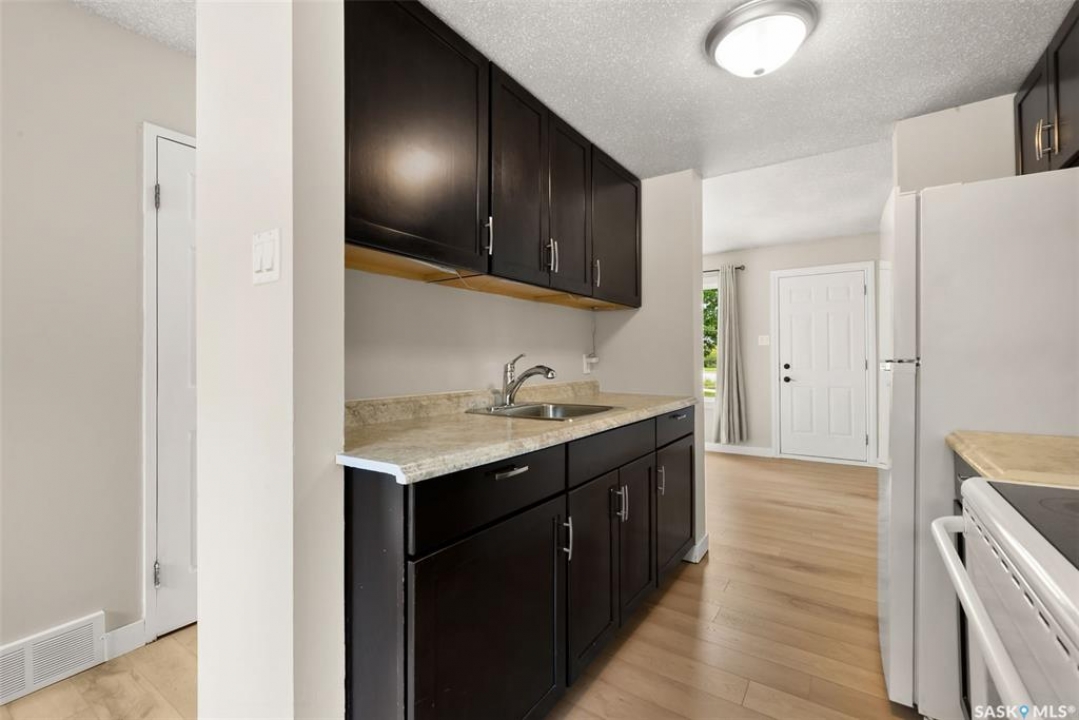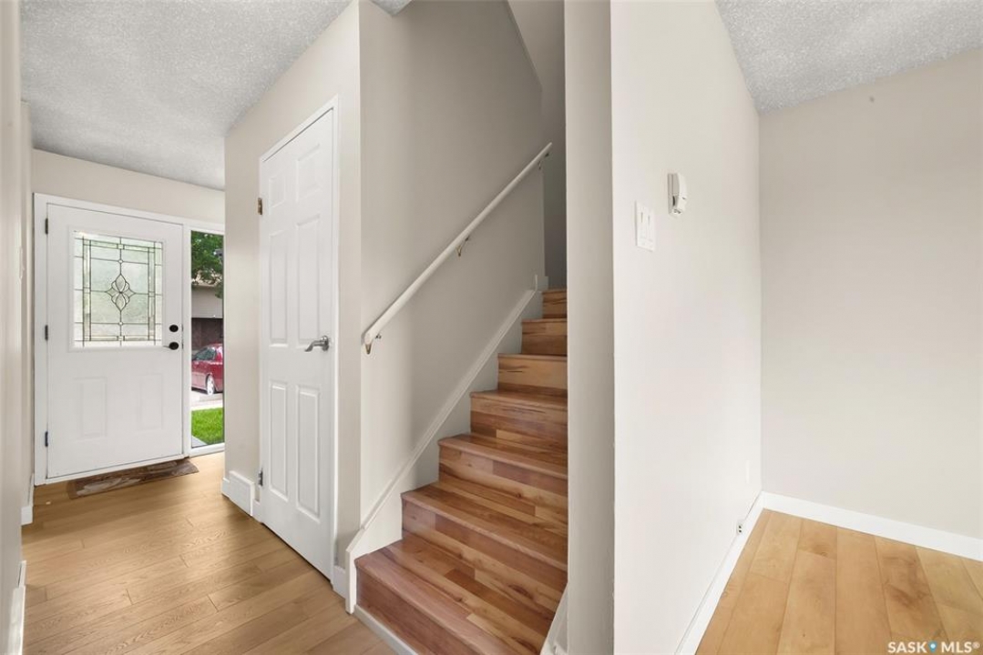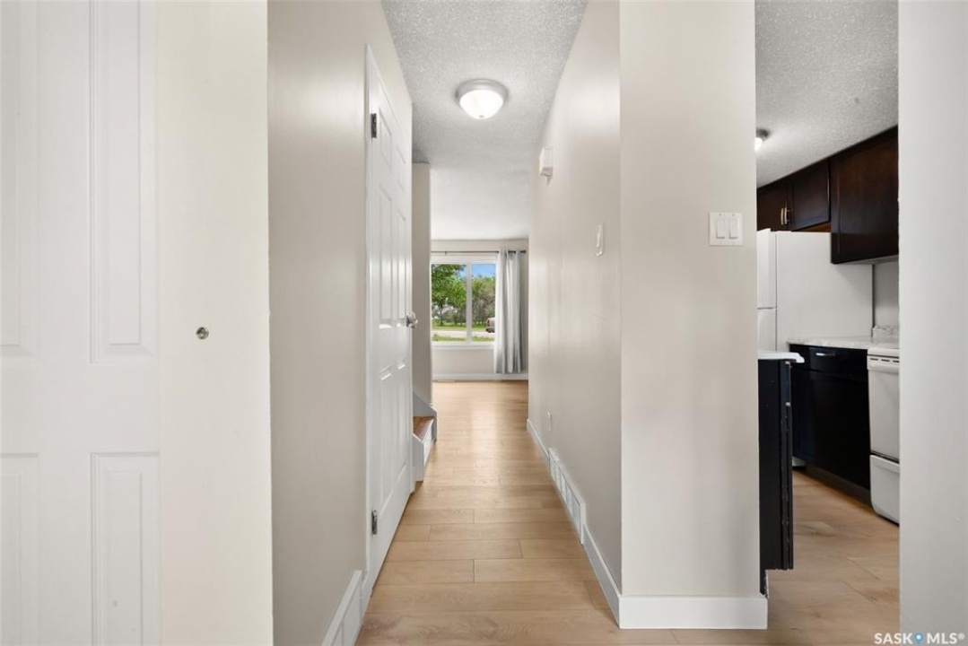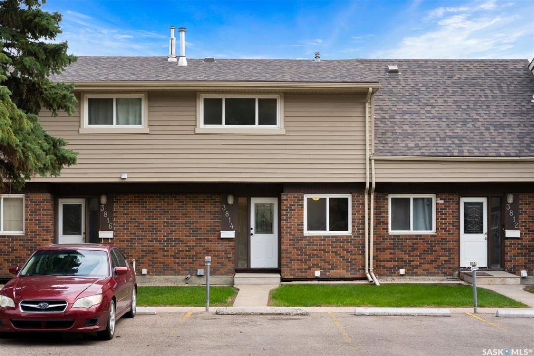 Looking for the perfect townhome or investment opportunity? This crisp, clean, and move in ready townhouse is just steps from the University of Regina, making it ideal for students, faculty, or anyone who wants to be close to campus amenities, south Regina area and all of its fantastic amenities. Offering 1,016 sq ft of living space, this recently refreshed unit features 3 bedrooms, 1 full bathroom, and an open, unfinished basement ready for your personal touch, whether that's a home gym, an additional bedroom, or extra family room space. The main floor welcomes you with a bright living room boasting a brand new window and peaceful views of the green space across the road. There's a designated dining area and a galley style kitchen with rich dark cabinetry and white appliances. Upstairs you'll find the main updated 4 piece bathroom, the spacious primary bedroom, and two additional bedrooms. Outside, enjoy your east-facing, partially fenced backyard—a great spot to relax, garden, or soak up the morning sun. One convenient parking stall is located right out front, and the unit also includes newer PVC windows, new shingles, and updated flooring throughout with no carpet! Water and sewer are included in the affordable condo fees, making this a smart and low maintenance home option. Whether you're looking to live in or rent out, this townhouse is a fantastic find in a highly walkable and convenient location.