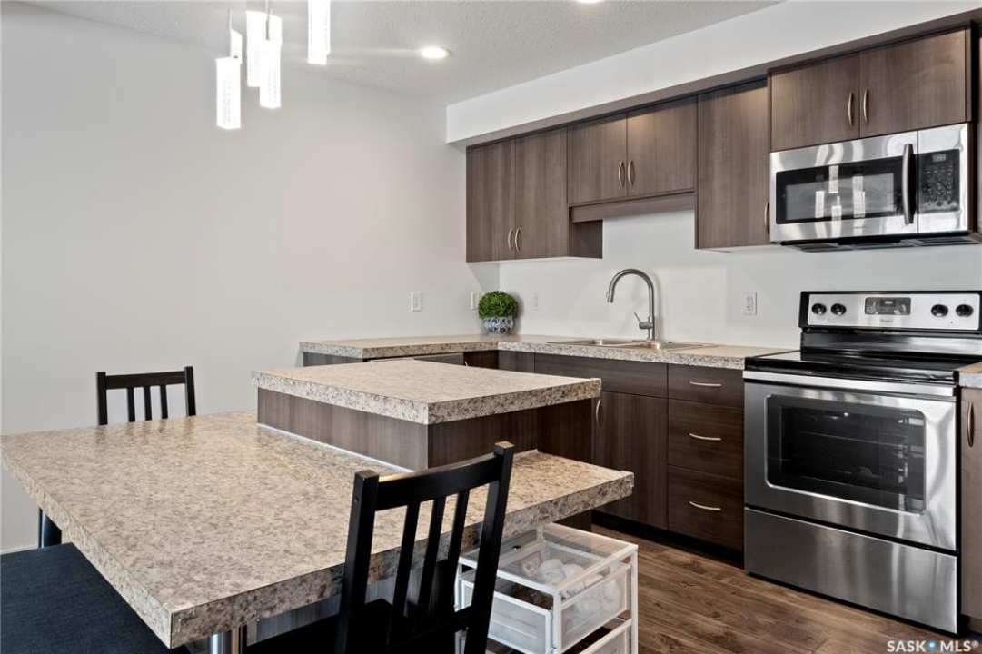 Welcome to this beautifully maintained 2 bed, 3 bath townhouse in the heart of Harbour Landing. Designed for comfort and convenience, this home offers an inviting open-concept main floor with modern finishes, a bright living area, and a stylish kitchen featuring stainless-steel appliances, ample cabinetry, and a centre island perfect for dining or entertaining. The second level boasts two generous bedrooms, including a primary suite with a walk-in closet connected to the 4-pc bathroom. You'll love the convenience of second-floor laundry, making everyday living effortless. The fully finished basement adds valuable extra living space with a spacious rec room and another full 4-pc bathroom—ideal for guests, a home office, or a cozy movie night. Located within walking distance to Harbour Landing School and close to all major South End amenities, this home offers the perfect blend of comfort and lifestyle. Additional features include low condo fees, central A/C, and a designated parking stall. A modern, move-in-ready home in one of Regina's most desirable neighbourhoods!