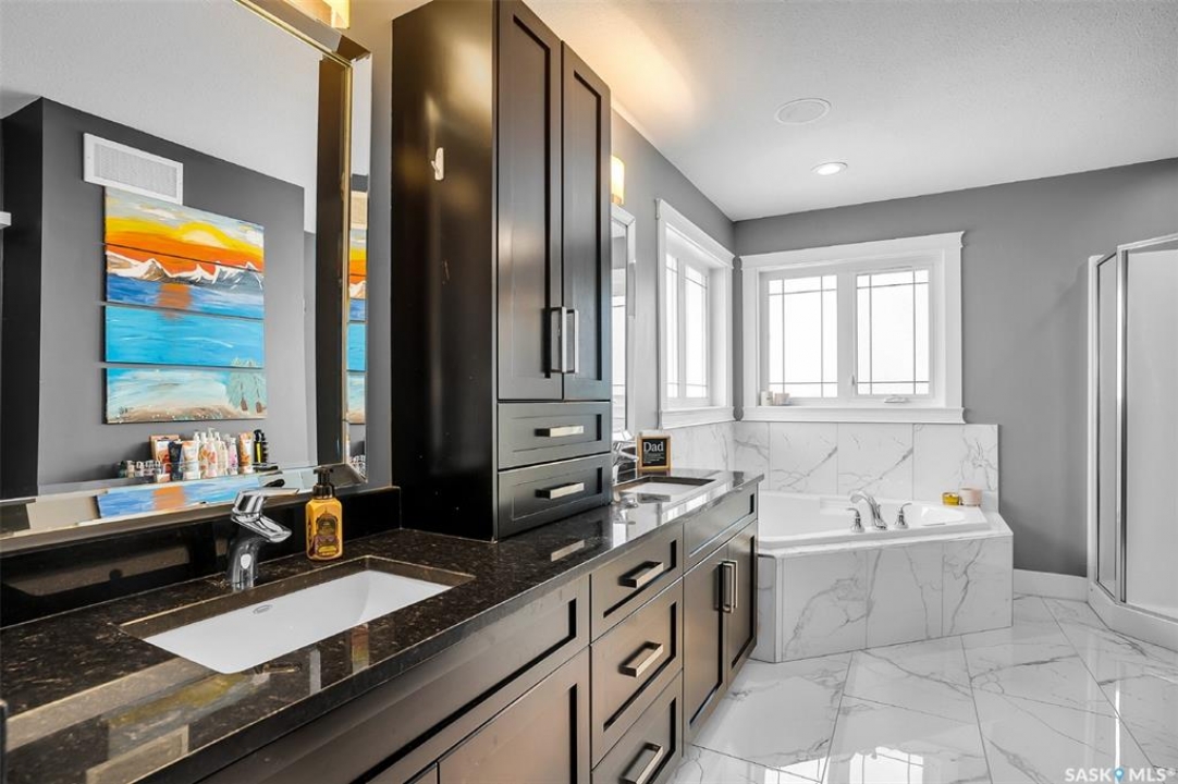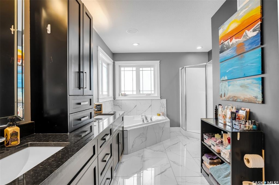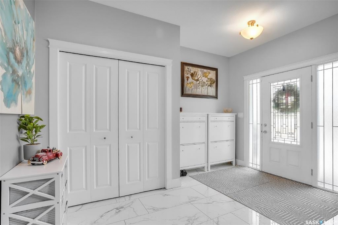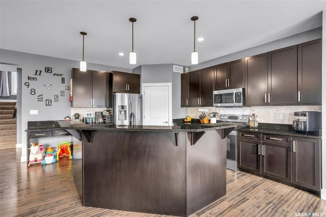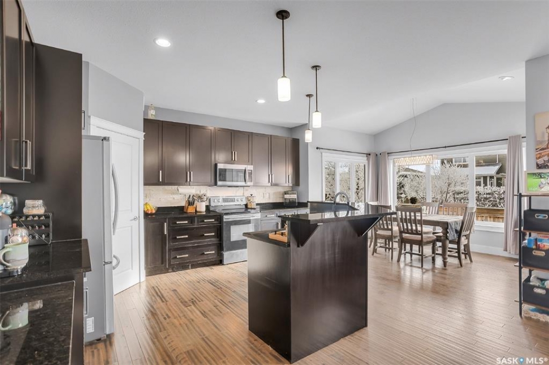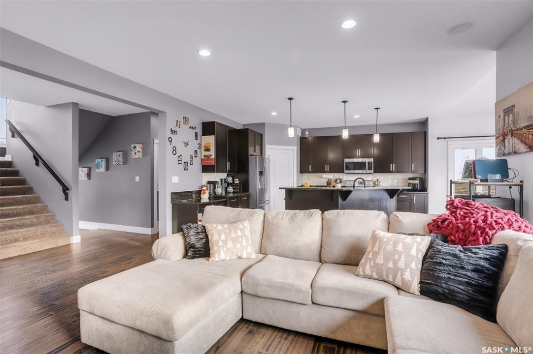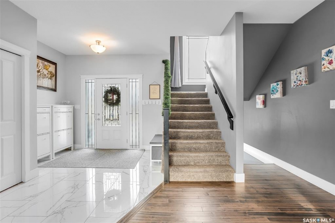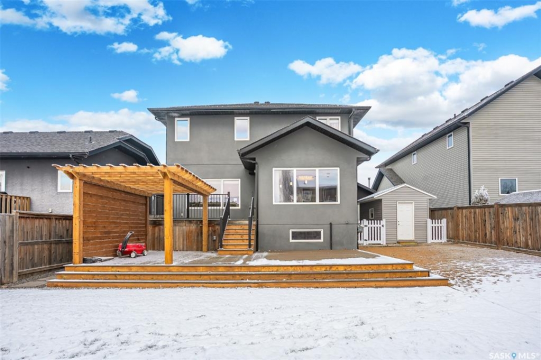 Welcome to 521 Redwood Crescent — a rare 6-bedroom 4-bathroom family home offering exceptional space, comfort, and quality in Warman's desirable Rockwood neighbourhood. Measuring an impressive 1,889 sq. ft. above grade, this beautifully designed home gives your family room to grow, live, and enjoy. Step inside to gleaming tile and hand-scraped hardwood floors that set a warm, welcoming tone. Thoughtful details appear throughout, including built-in shoe storage at the front door. The main-floor living room is an inviting gathering space, complete with a cozy gas fireplace for relaxing evenings in. The open-concept layout and large windows provide abundant natural light and a clear view of the newly transformed backyard. A convenient main-floor laundry room adds ease to everyday routines. Upstairs, you'll find three generously sized bedrooms, including a spacious primary suite with a walk-in closet and a spa-inspired ensuite. A second full bathroom completes the upper level. The fully developed basement adds three more large bedrooms, a comfortable family room, and a fourth bathroom—ideal for a large family, guests, or work-from-home needs. The home is also equipped with hot water on demand, providing efficient, endless hot water for daily living. The heated attached garage, featuring a natural gas heater and custom-coated floor, is perfect for parking, projects, or storage. Outside, the backyard has been redesigned and newly landscaped. Enjoy fresh sod, a dedicated sandpit play area, a brand-new deck, a stylish pergola, and a spacious storage shed—creating a beautiful and functional outdoor space ready for both relaxation and play. Set on a quiet crescent surrounded by walking paths and greenspace, this property offers the ideal blend of space, style, and family-friendly living. Be sure to check out the virtual tour. For more details or to schedule a private showing, contact your favourite REALTOR � today.