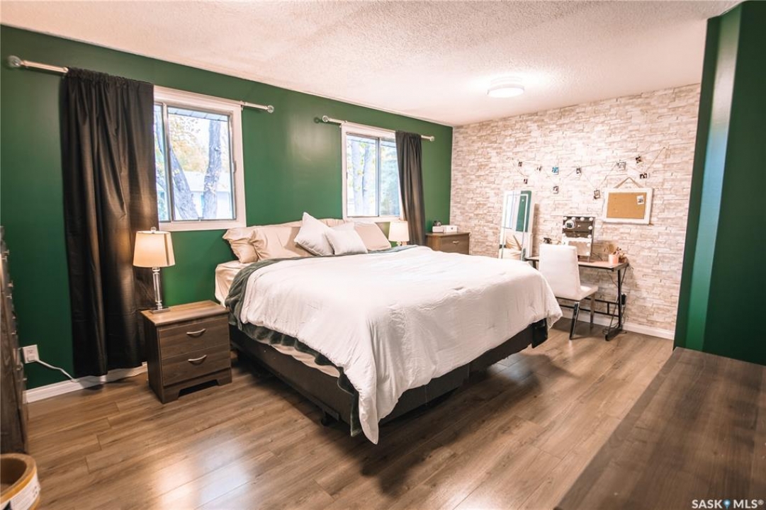 This beautifully maintained 1040 sq ft bungalow shows exceptionally well and offers a perfect blend of comfort, functionality, and thoughtful updates throughout. The main floor features a bright and spacious living room filled with natural light. The kitchen is both practical and inviting, showcasing painted white cabinets, a large walk-in pantry, and an eating area with a newer PVC window. The generous primary bedroom was originally two bedrooms and could easily be converted back if desired. A well-sized second bedroom and an upgraded four-piece bathroom complete the main level. The fully developed basement is equally impressive, featuring a large L-shaped rec room with a wet bar, full-size fridge, and built-in bookcases — perfect for entertaining or relaxing. You'll also find a three-piece bathroom complete with a cedar-lined dry heat sauna, an additional bedroom, a laundry area and a separate mechanical room. Outside, enjoy a fully fenced and beautifully landscaped yard with a patio, mature trees, and shrubs. There's a 22x24 double detached garage with lane access and a convenient single front driveway, providing ample parking options. Other notable updates include: New high-efficiency furnace and central air conditioning, new flooring and vanity in the downstairs bathroom, upgraded tub surround, flooring, and exhaust fan in the upstairs bathroom, roof with fiberglass shingles and newer garage door opener. Conveniently located within walking distance to both public and separate schools, close to shopping, parks, and all amenities, this home truly stands out for its care and condition.