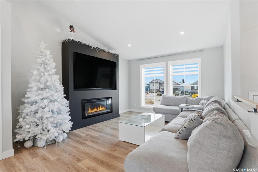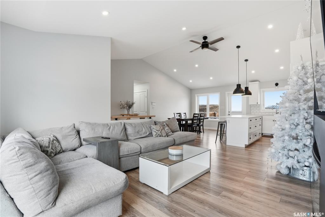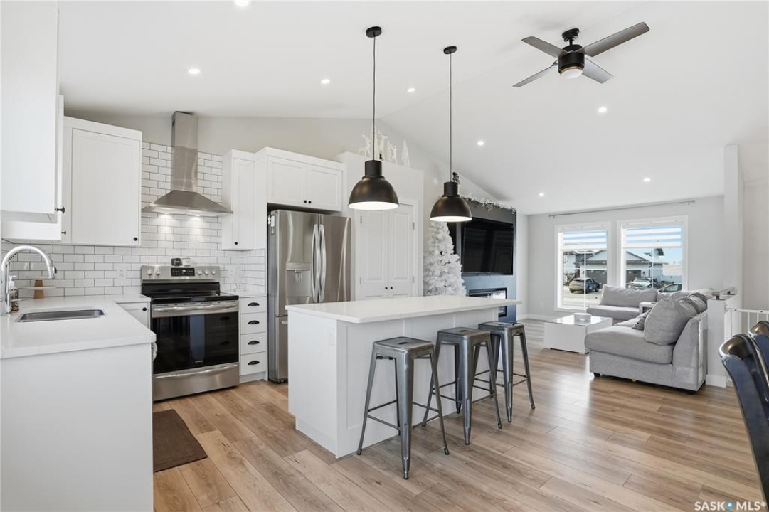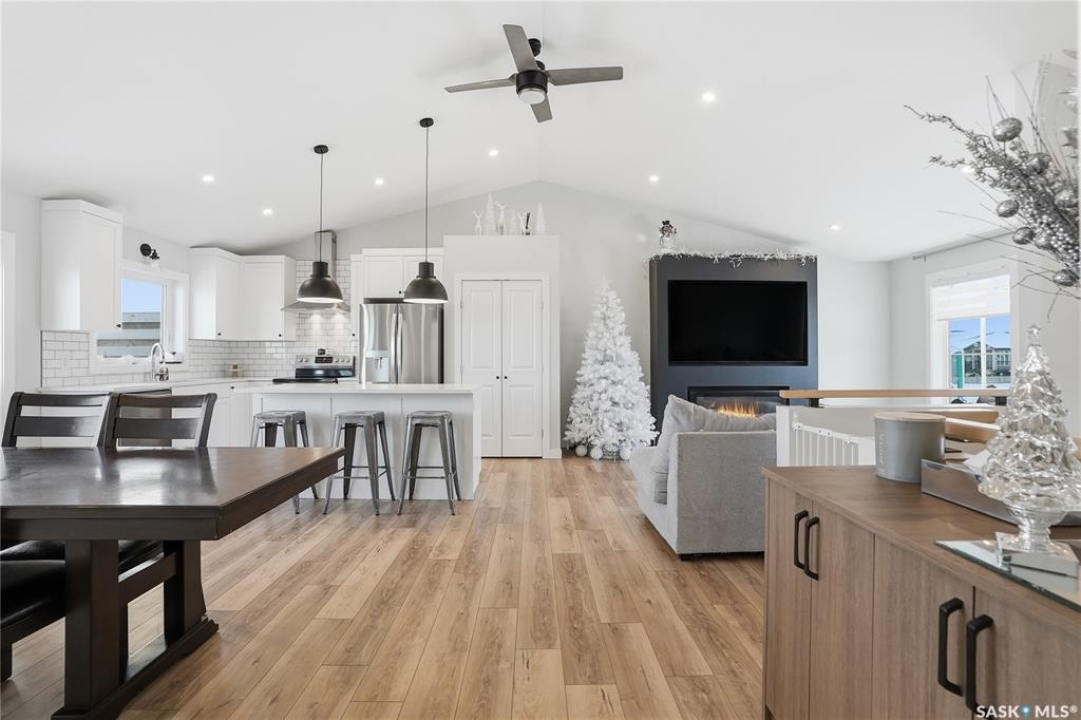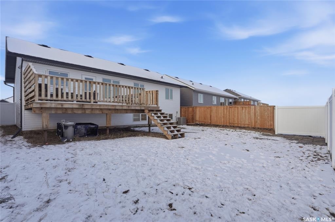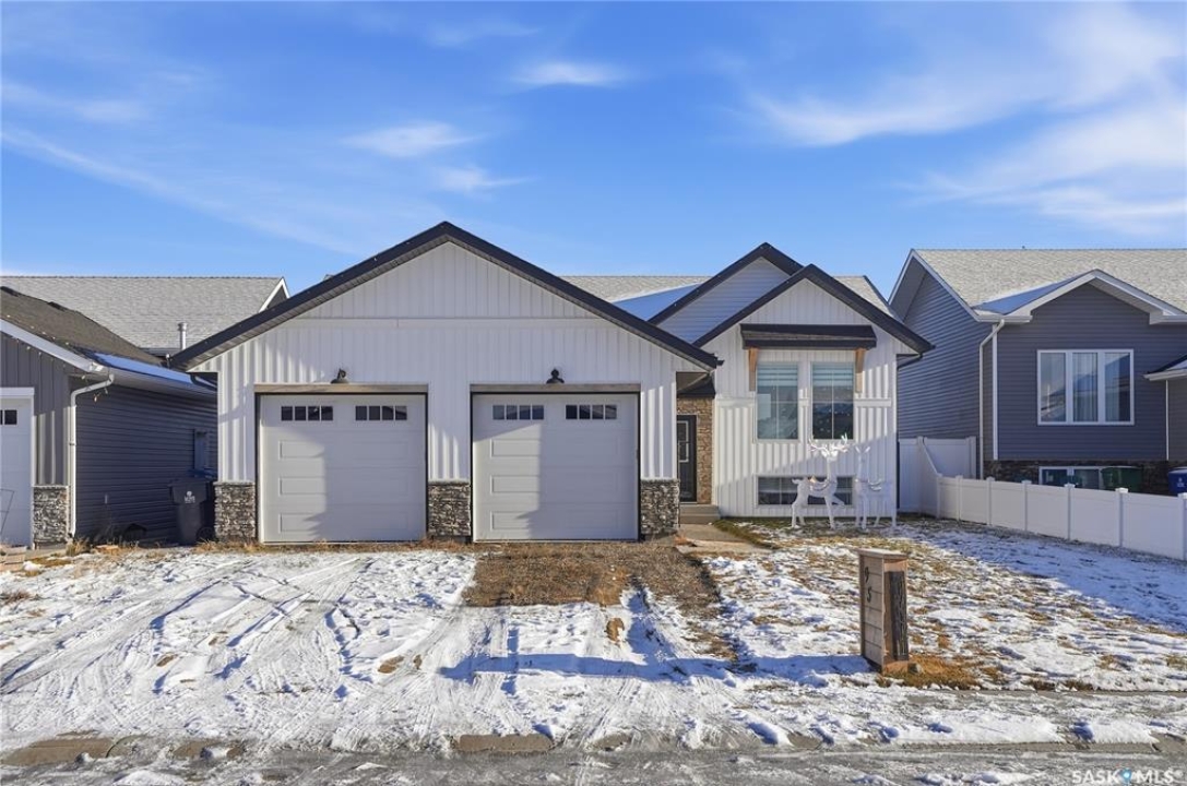 Welcome to 95 Diefenbaker Avenue in the growing community of Hague — a beautifully finished 2022-built bungalow offering modern comfort, stylish finishes, and a fully developed basement for extra living space. With 1,245 sq ft above grade, this home delivers a functional, family-friendly layout with contemporary vinyl plank flooring throughout the main areas and an inviting open concept design. The main floor features a bright living room with a gorgeous feature electric fireplace, that flows seamlessly into the dining area and spacious kitchen, complete with plenty of cabinetry, clean lines making it a great space for cooking and gathering along with an eat-up style island for additional seating. Down the hall, you'll find three well-appointed bedrooms including a generous primary suite with a 4-piece ensuite. A second full 4-piece bathroom completes the main level, offering convenience for family or guests. The lower level is fully finished and expands your living space with a large basement living room, large recreation room, additional bedroom, and another 4-piece bathroom — perfect for teens, guests, or a home office setup. With a full basement and modern construction, the space feels comfortable and bright. Outside, the property sits on a 6,075 sq ft lot, with a 23.4' x 25.4' double attached garage. The backyard features a large deck leading you down to the fully fenced backyard, with plenty of space for kids to play. A wonderful opportunity to enjoy a newer home in a welcoming Saskatchewan community — move-in ready and built for comfort.