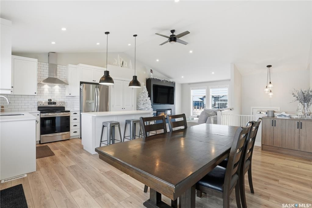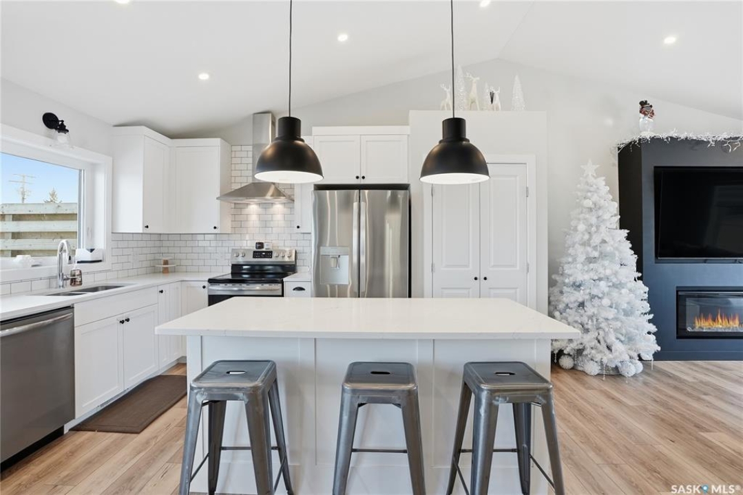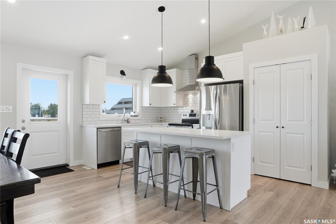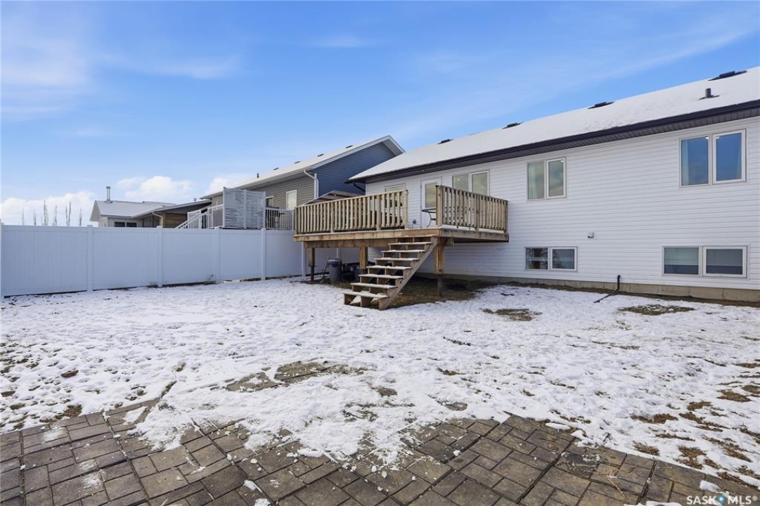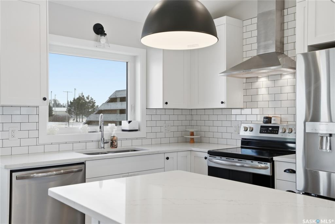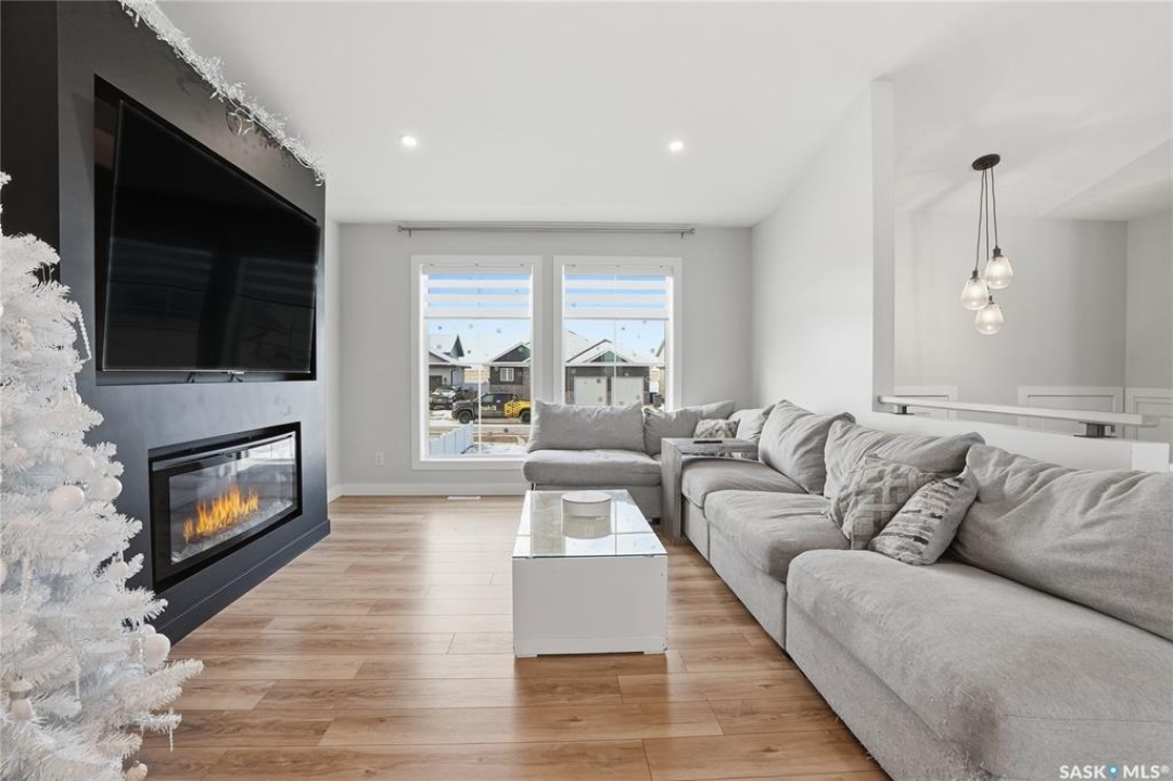Welcome to 95 Diefenbaker Avenue in the growing community of Hague — a beautifully finished 2022-built bungalow offering modern comfort, stylish finishes, and a fully developed basement for extra living space. With 1,245 sq ft above grade, this home delivers a functional, family-friendly layout with contemporary vinyl plank flooring throughout the main areas and an inviting open concept design. The main floor features a bright living room with a gorgeous feature electric fireplace, that flows seamlessly into the dining area and spacious kitchen, complete with plenty of cabinetry, clean lines making it a great space for cooking and gathering along with an eat-up style island for additional seating. Down the hall, you'll find three well-appointed bedrooms including a generous primary suite with a 4-piece ensuite. A second full 4-piece bathroom completes the main level, offering convenience for family or guests. The lower level is fully finished and expands your living space with a large basement living room, large recreation room, additional bedroom, and another 4-piece bathroom — perfect for teens, guests, or a home office setup. With a full basement and modern construction, the space feels comfortable and bright. Outside, the property sits on a 6,075 sq ft lot, with a 23.4' x 25.4' double attached garage. The backyard features a large deck leading you down to the fully fenced backyard, with plenty of space for kids to play. A wonderful opportunity to enjoy a newer home in a welcoming Saskatchewan community — move-in ready and built for comfort.