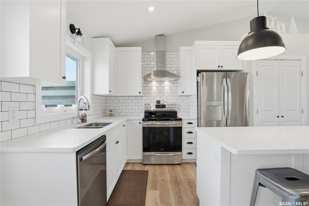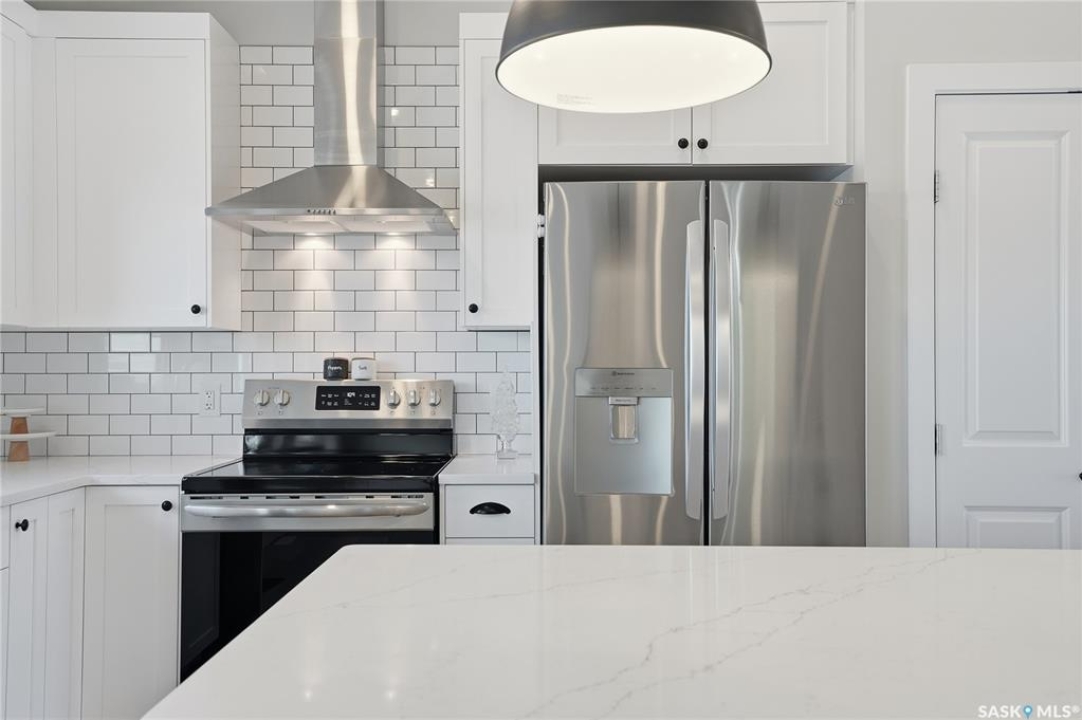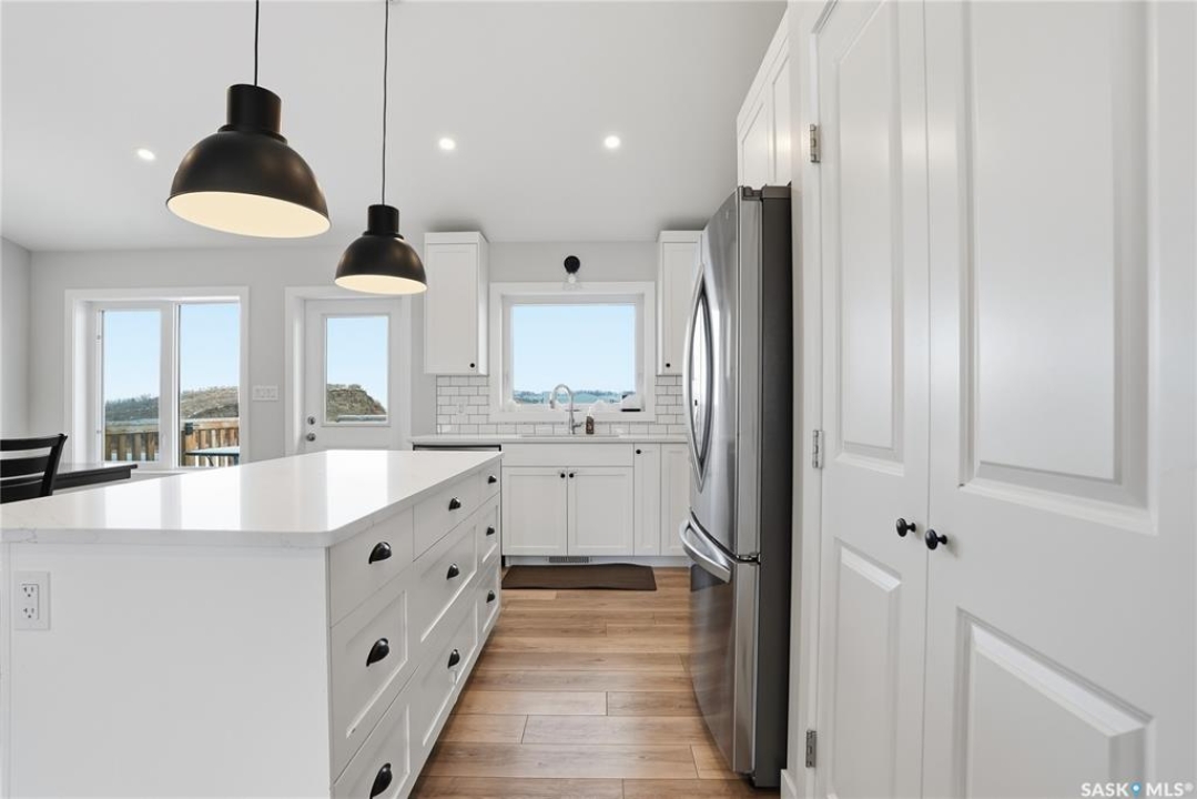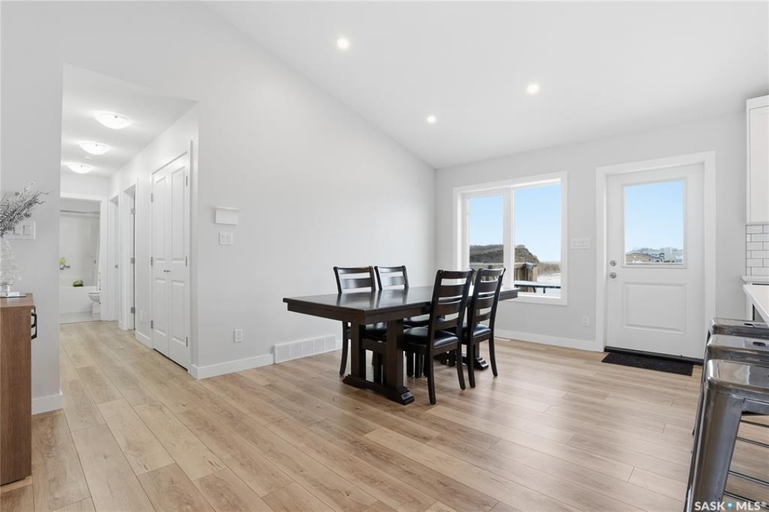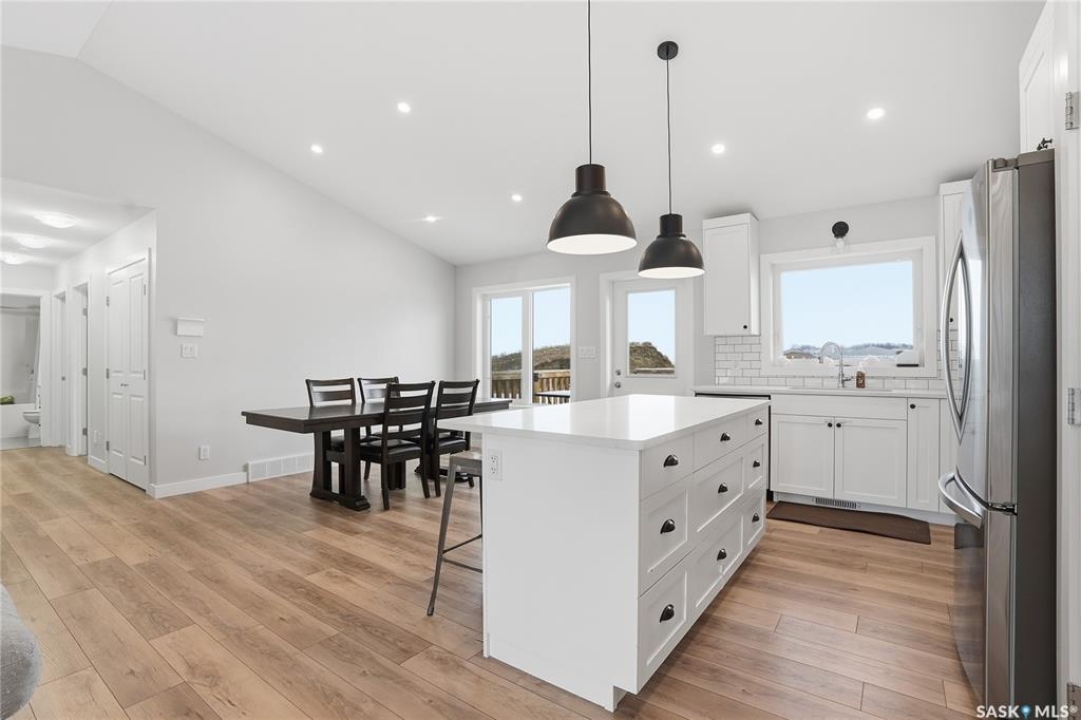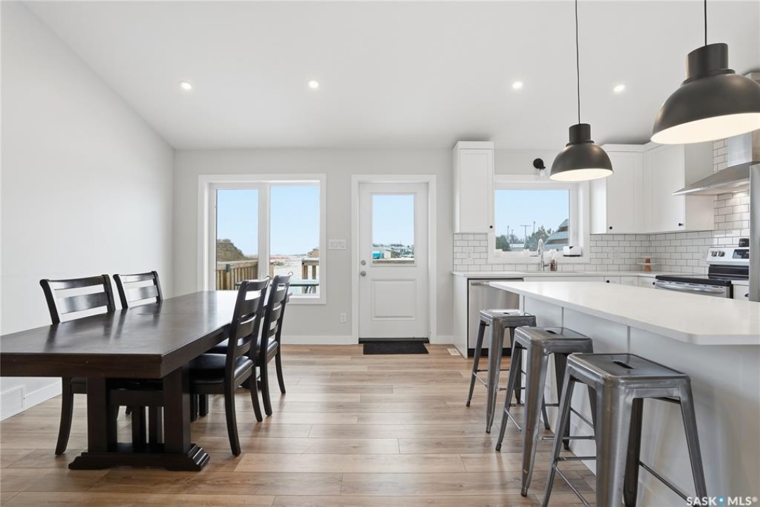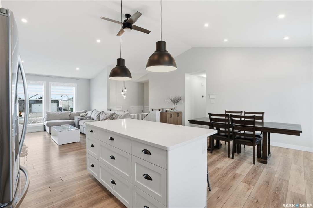 Welcome to 95 Diefenbaker Avenue in the growing community of Hague — a beautifully finished 2022-built bungalow offering modern comfort, stylish finishes, and a fully developed basement for extra living space. With 1,245 sq ft above grade, this home delivers a functional, family-friendly layout with contemporary vinyl plank flooring throughout the main areas and an inviting open concept design. The main floor features a bright living room with a gorgeous feature electric fireplace, that flows seamlessly into the dining area and spacious kitchen, complete with plenty of cabinetry, clean lines making it a great space for cooking and gathering along with an eat-up style island for additional seating. Down the hall, you'll find three well-appointed bedrooms including a generous primary suite with a 4-piece ensuite. A second full 4-piece bathroom completes the main level, offering convenience for family or guests. The lower level is fully finished and expands your living space with a large basement living room, large recreation room, additional bedroom, and another 4-piece bathroom — perfect for teens, guests, or a home office setup. With a full basement and modern construction, the space feels comfortable and bright. Outside, the property sits on a 6,075 sq ft lot, with a 23.4' x 25.4' double attached garage. The backyard features a large deck leading you down to the fully fenced backyard, with plenty of space for kids to play. A wonderful opportunity to enjoy a newer home in a welcoming Saskatchewan community — move-in ready and built for comfort.