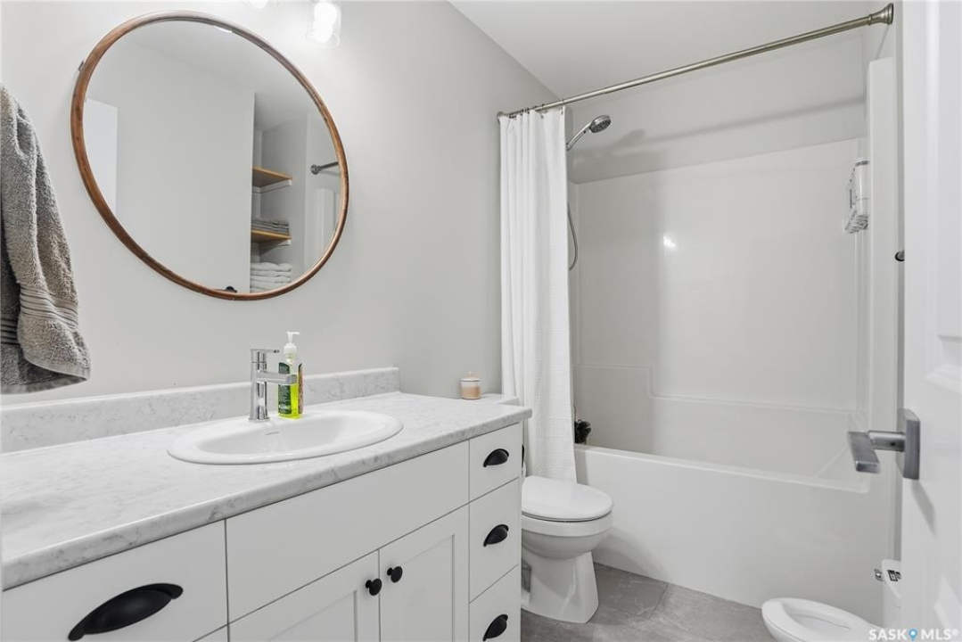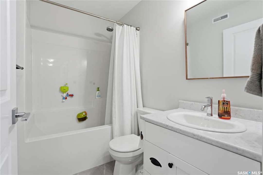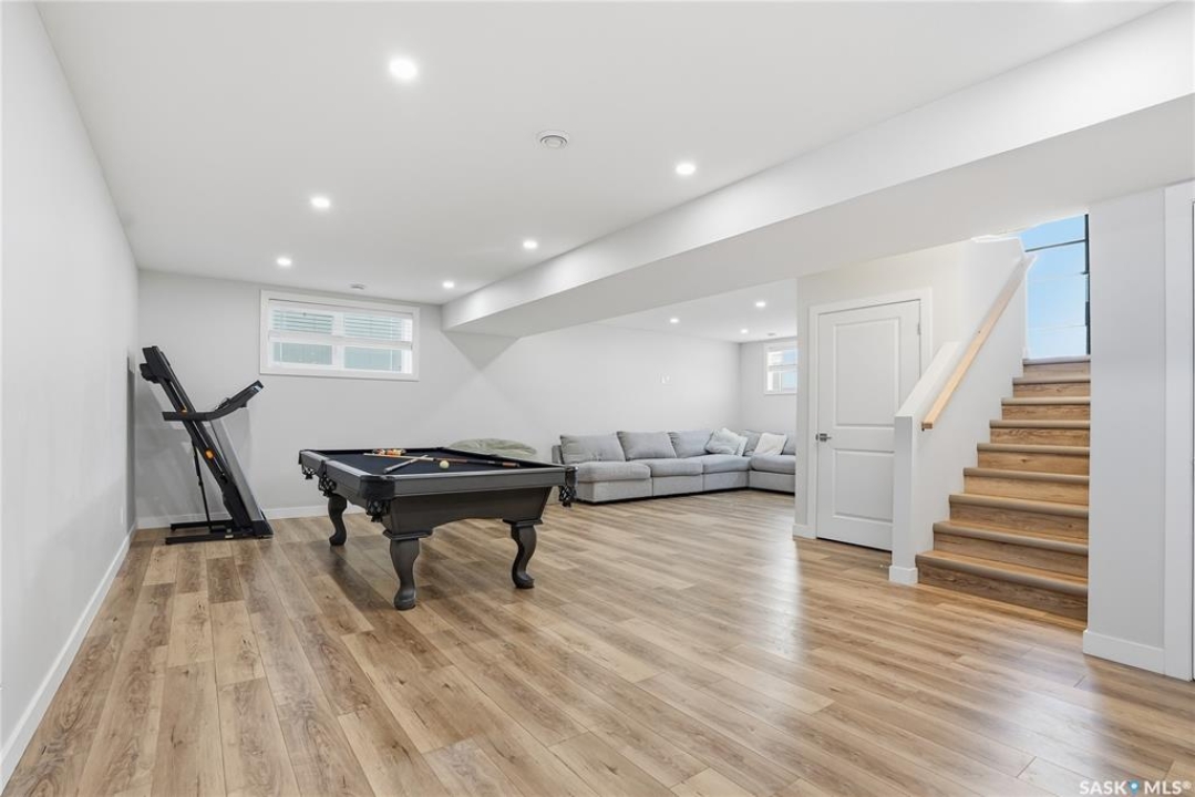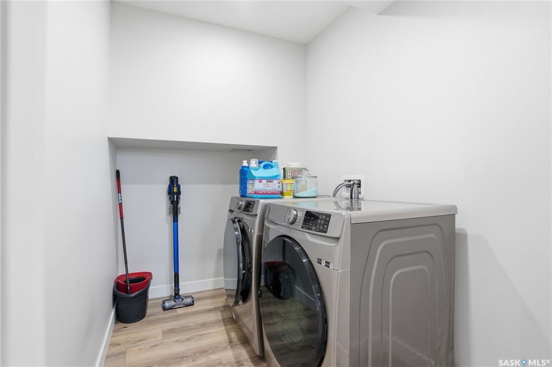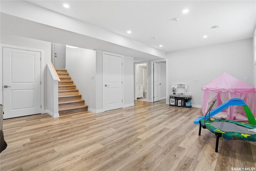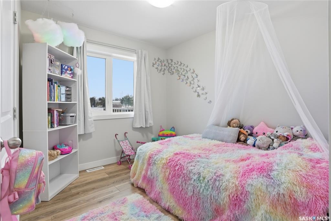 Welcome to 95 Diefenbaker Avenue in the growing community of Hague — a beautifully finished 2022-built bungalow offering modern comfort, stylish finishes, and a fully developed basement for extra living space. With 1,245 sq ft above grade, this home delivers a functional, family-friendly layout with contemporary vinyl plank flooring throughout the main areas and an inviting open concept design. The main floor features a bright living room with a gorgeous feature electric fireplace, that flows seamlessly into the dining area and spacious kitchen, complete with plenty of cabinetry, clean lines making it a great space for cooking and gathering along with an eat-up style island for additional seating. Down the hall, you'll find three well-appointed bedrooms including a generous primary suite with a 4-piece ensuite. A second full 4-piece bathroom completes the main level, offering convenience for family or guests. The lower level is fully finished and expands your living space with a large basement living room, large recreation room, additional bedroom, and another 4-piece bathroom — perfect for teens, guests, or a home office setup. With a full basement and modern construction, the space feels comfortable and bright. Outside, the property sits on a 6,075 sq ft lot, with a 23.4' x 25.4' double attached garage. The backyard features a large deck leading you down to the fully fenced backyard, with plenty of space for kids to play. A wonderful opportunity to enjoy a newer home in a welcoming Saskatchewan community — move-in ready and built for comfort.