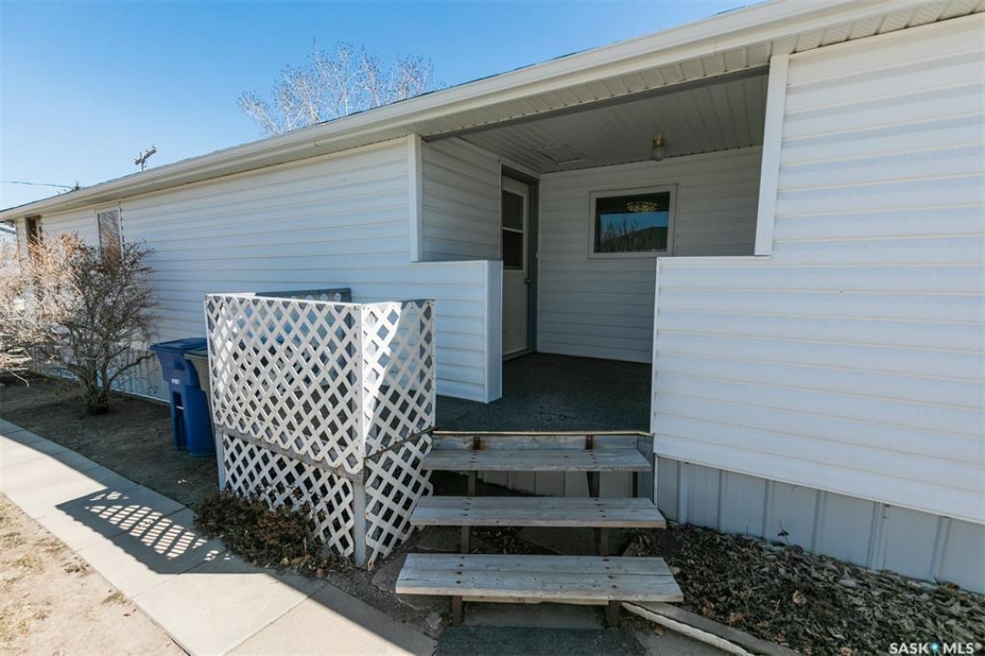 Who doesn't like a spacious front porch entrance? This 1218 sq. ft. double wide manufactured home has one that you will love, with room for a freezer, extra fridge and plenty of pantry and coat/boot space. 2 bedrooms, one office that has been used as a 3rd bedroom in the past, a lovely 4 pc. bath. Spacious kitchen / dining are with plenty of cabinets and room for a dining table, a bright living area, and laundry complete the main level. The laundry room offers more storage and cupboards. Cute yard, partially fenced and a few trees and shrubs for added privacy. A covered front small deck. A single detached garage and a single driveway which offers you off street parking. Constructed in 1965 with additions in 1977. Shingles replaced in approx. 2016. Water heater was recently replaced. Crawl space was recently insulated and water lines heat taped. Windows were replaced in approx. 1986. Detached garage was added in 1997. The garage door opener does not work. Bonus- there is not a pavement levy at this location. Close to amenities. Available for a quick possession.