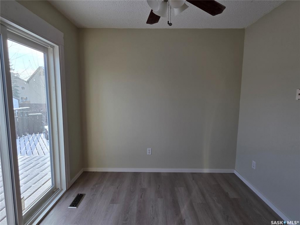 NEW LOOK! NEW LIFE! Welcome to the fresh & polished version of your next home. Reimagined with updates buyers will love, this 2 bedroom, 1 bathroom bi-level has undergone the perfect glow-up. Enjoy brand-new flooring & baseboards throughout the main level, a new front storm door, & fresh paint touchups that make the home feel bright, crisp, & move-in ready. Step into a welcoming front-facing living room filled with natural light; warm, open, & ready for cozy days or lively evenings. The eat-in kitchen flows seamlessly off the living space & comes equipped with fridge, stove, & built-in dishwasher, making meal prep and daily life convenient & comfortable. Just off the dining area, patio doors lead you to a freshly painted two-tier deck & gate, extending your living space outdoors. Picture BBQ nights, morning coffees, & watching kids or pets play; plus cherry & plum trees right in your backyard for sweet summer picking. Two bedrooms & a full bathroom complete the main floor. The basement is framed & waiting for your vision; future rec room, den/office, bathroom, laundry, &/or storage - giving you opportunity to add value over time. Practical, big-ticket updates add peace of mind & long-term value, including newer shingles, updated main floor windows, & central A/C for summer comfort. Located in family-friendly Rochdale Park, you're steps from NW Leisure Centre, Doug Wickenheiser Arena, parks, shopping, & convenient north-end amenities. A front gravel driveway offers plenty of off-street parking.
