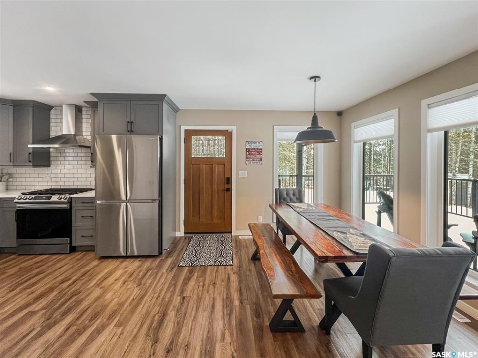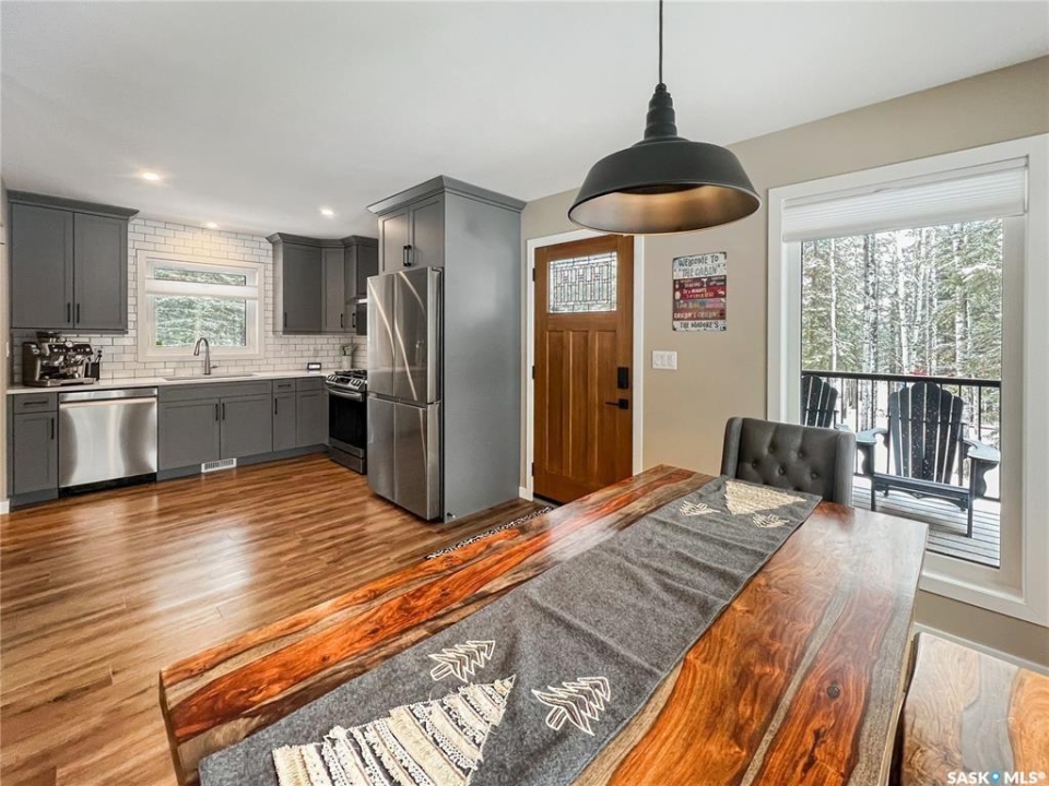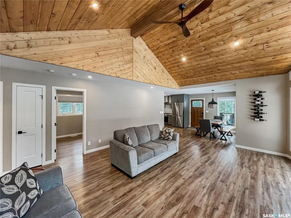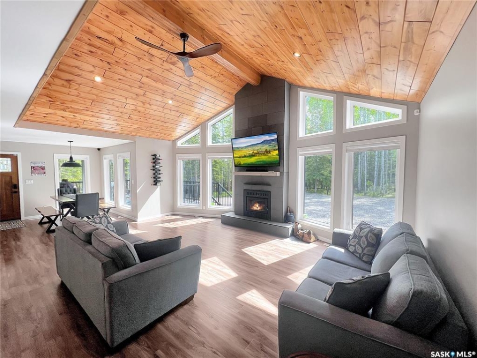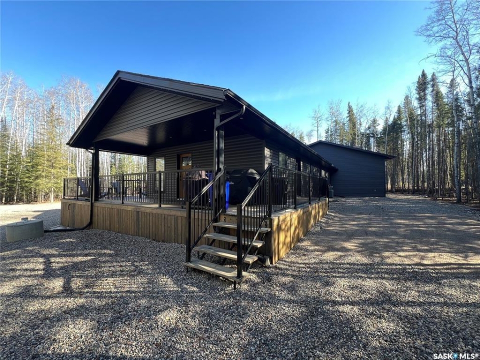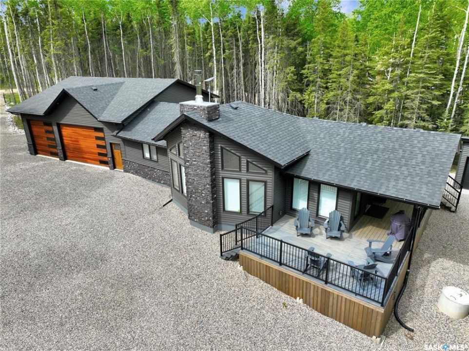 Private & secluded with the Ultimate Garage!!! This well-crafted bungalow provides a calm, secluded escape from everyday noise. Located on 1.32acre landscaped yard, this home offers 3 bedrooms, a full bathroom, and an impressive 36' x 40' triple attached garage. The home has an open floor plan with a well thought out kitchen featuring, quartz counter tops, soft close cabinets, gas range, and large pantry. Large windows flood the spacious living and dining room with an abundance of natural light. The stunning living room boasts a wood fireplace with a stone backdrop, complemented by a vaulted pine ceiling. Two additional nice sized bedrooms & fresh 4pc bathroom. The generously sized master bedroom features a convenient walk-through closet leading to a private 3-piece ensuite. Main floor laundry and mudroom. The stunning garage, completed in 2022, spans an impressive 36'X40' and boasts a hutch bed perfect for hosting extra company, 2-piece bathroom, wood fireplace, bar table & chairs, fridge, and counter area-all heated by a Natural Gas furnace. Finished with vinyl plank flooring throughout, a sleek black metal ceiling, and pine finishing touches, it epitomizes the ultimate man cave experience. Other notable features include: turn-Key, video surveillance, a delightful outdoor space complete with sheds, fenced garden area, an awesome outside bar, with roll up door, cover deck area & quartz bar table all with access to fire pit area with ample firewood, 2 electrified RV sites for company, a covered deck, central air-conditioning, 2X1100 gallon water tanks, 1400gallon septic and a gated driveway ensuring security and privacy. Explore hiking trails, go wildlife watching, or simply unwind in the tranquility of the forest. Don't miss out on this incredible opportunity to own a piece of Candle Lake paradise.